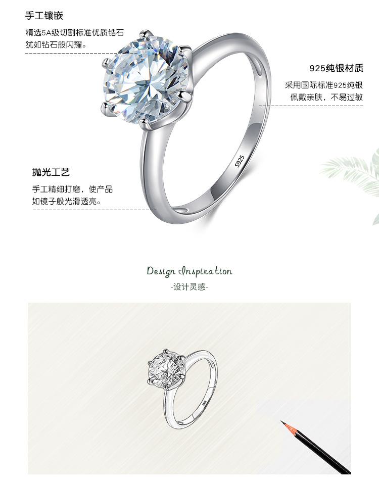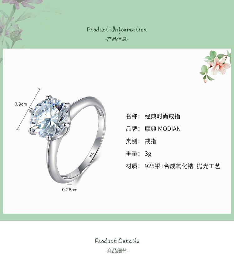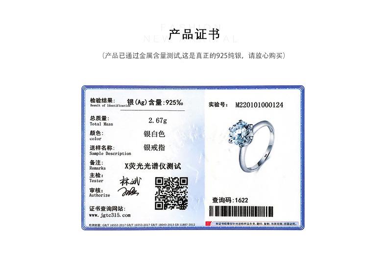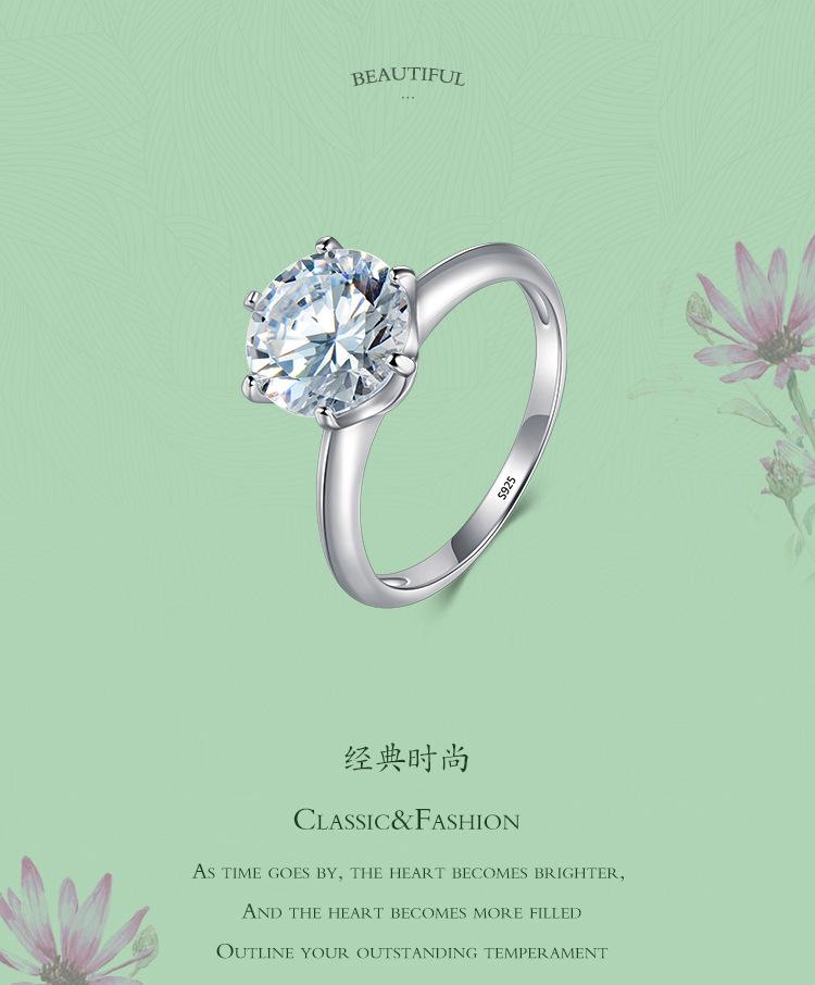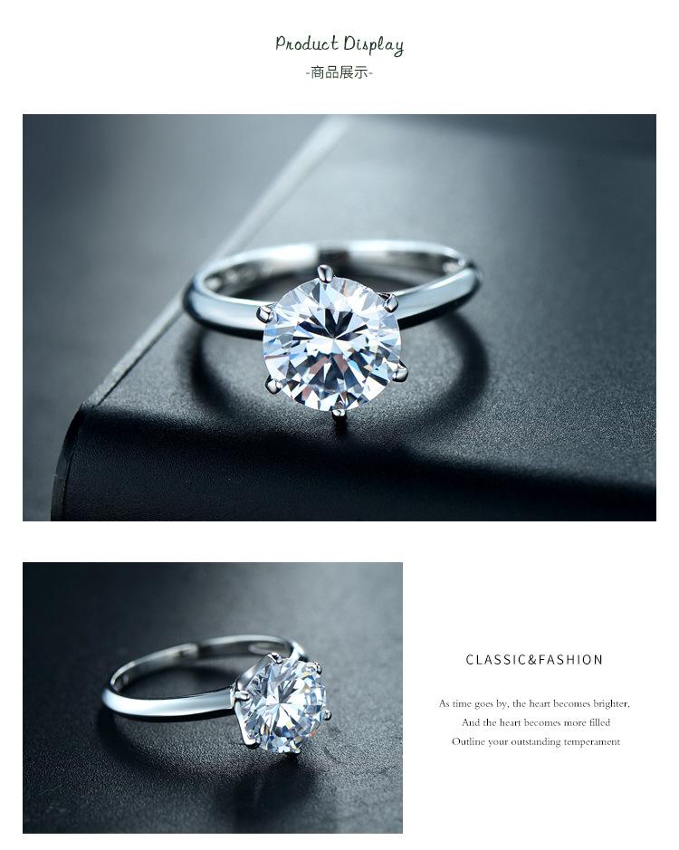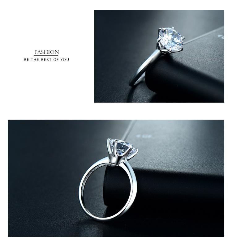 Anillo clásico de diamantes de seis garras s925, anillo de plata esterlina con temperamento simple, anillo de moda para mujer, joyería de celebridades de Internet europeas y americanas.