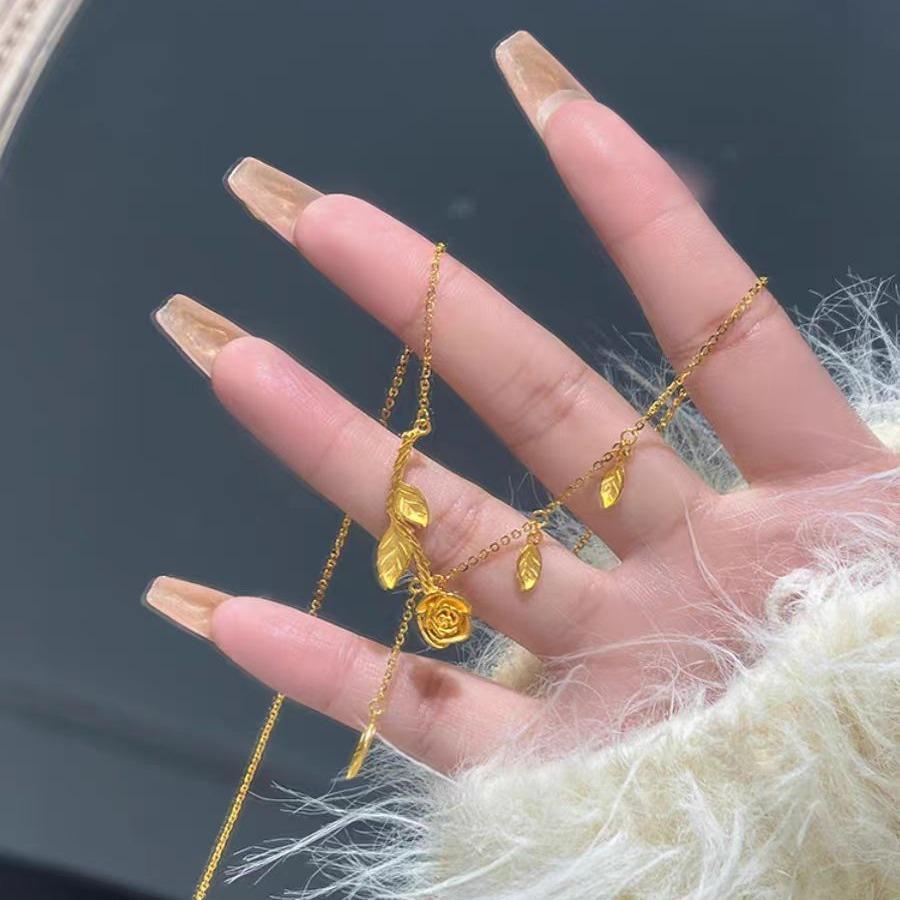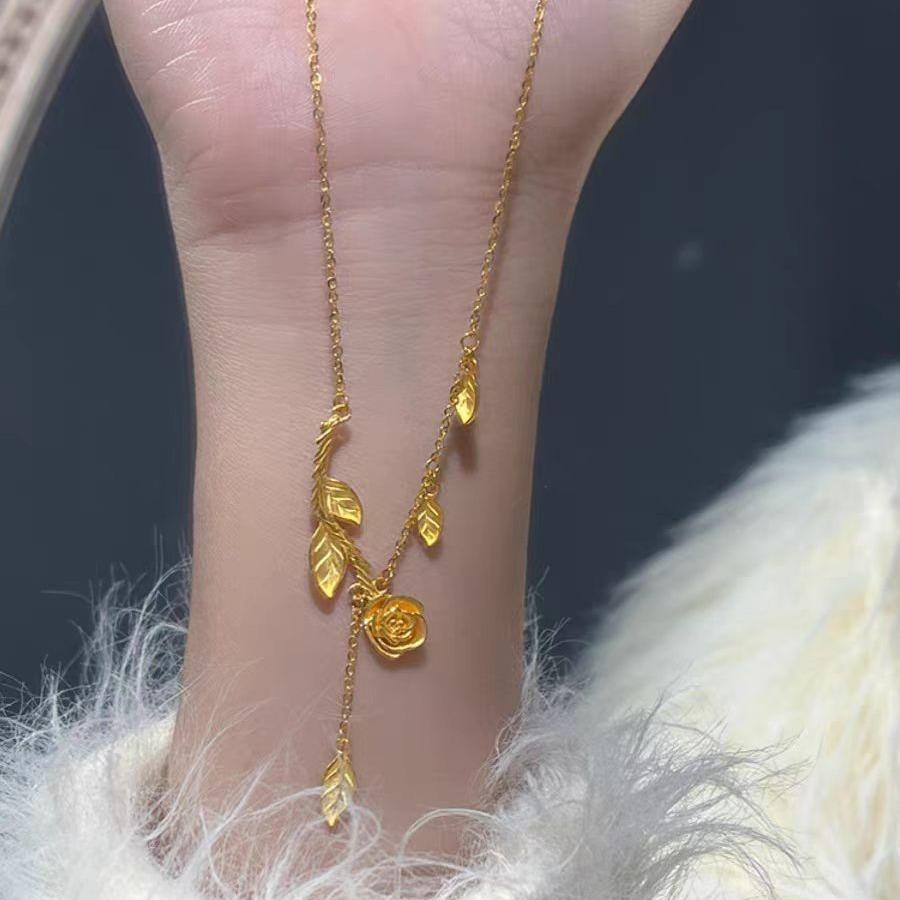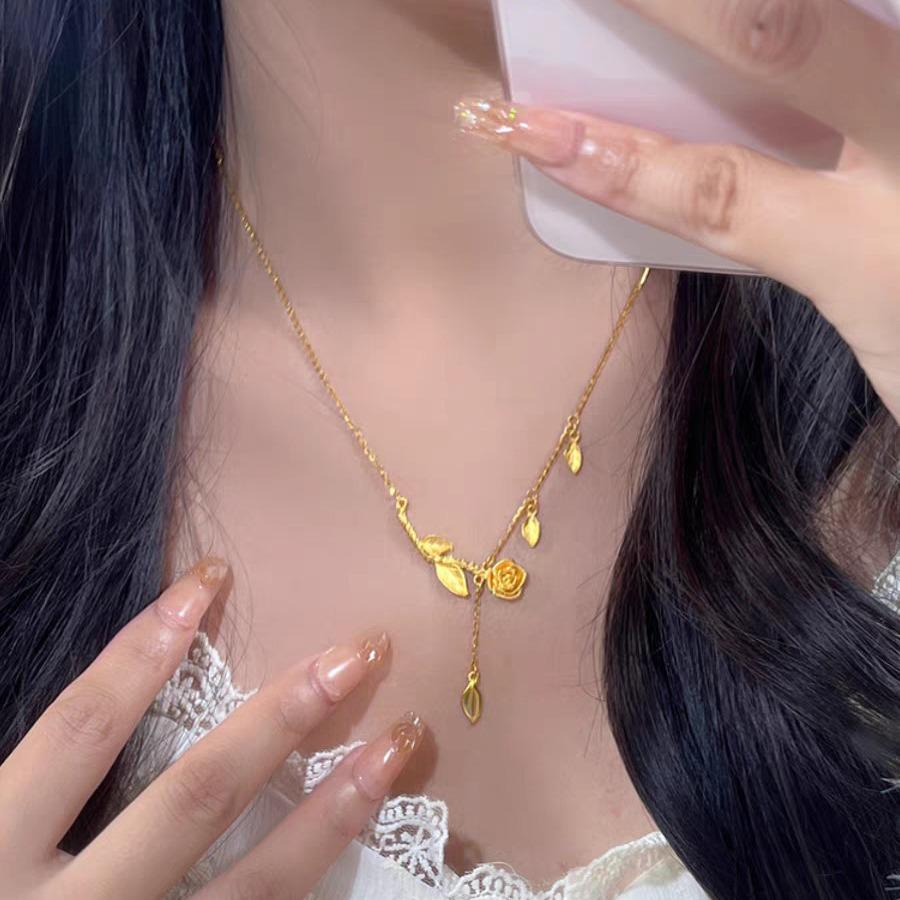 Nuevo collar de rosa dorado tienda con borla dorado collar de clavícula para damas joyería al por mayor