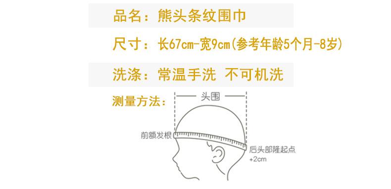 Pink bear head striped scarf, Yellow Bear Head striped scarf, Orange bear head striped scarf, Blue Bear Head s...
