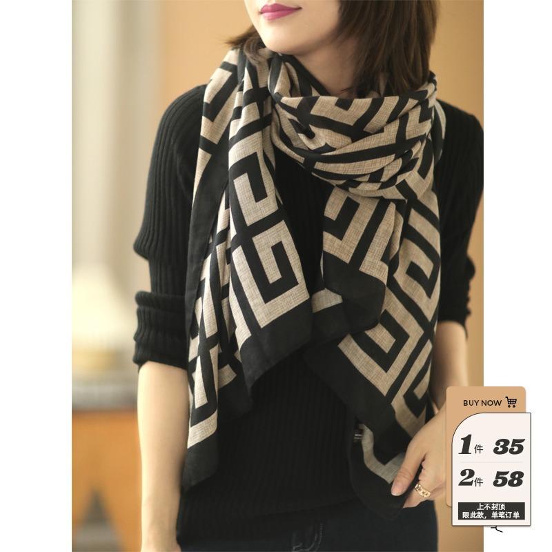 2023 nuevo a menudo ir a casa para ver la serie de bufanda de algodón y lino volver a la forma del elemento moda estilo extranjero chal de mujer 180*90