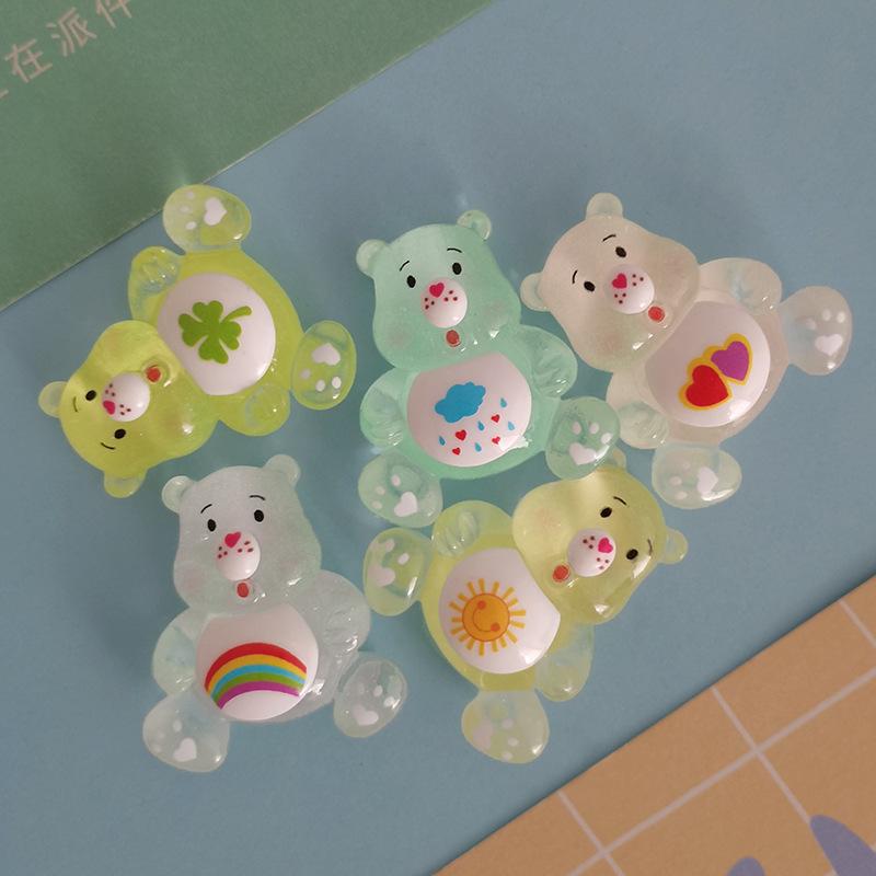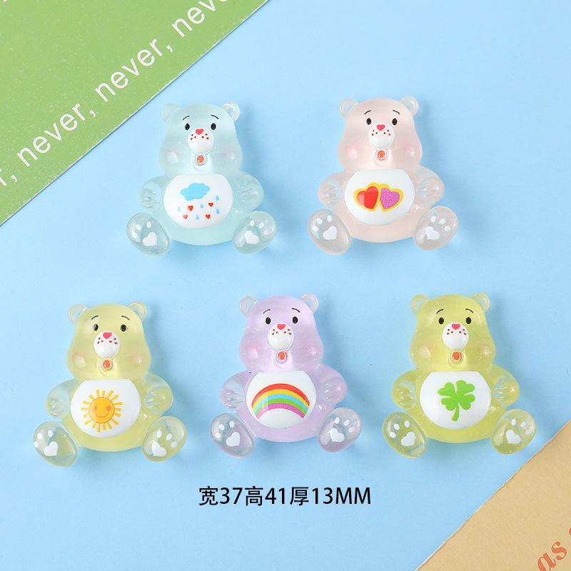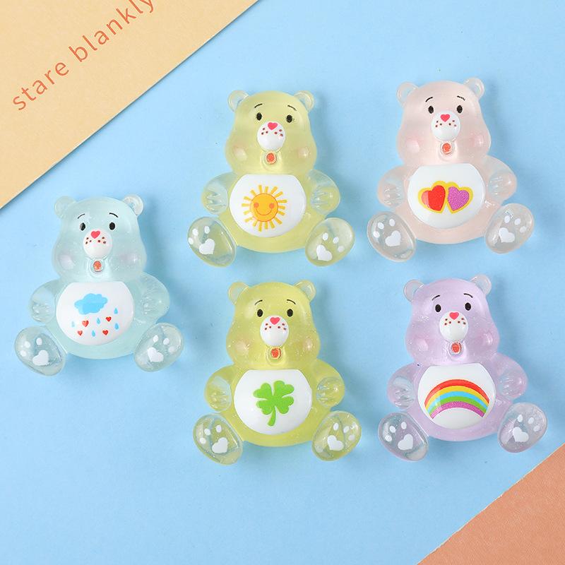 Gran oso arcoíris luminoso transparente de resina, accesorios para hacer tú mismo, hebilla para zapatos, funda para teléfono, crema, gel, accesorios para el cabello, material al por mayor