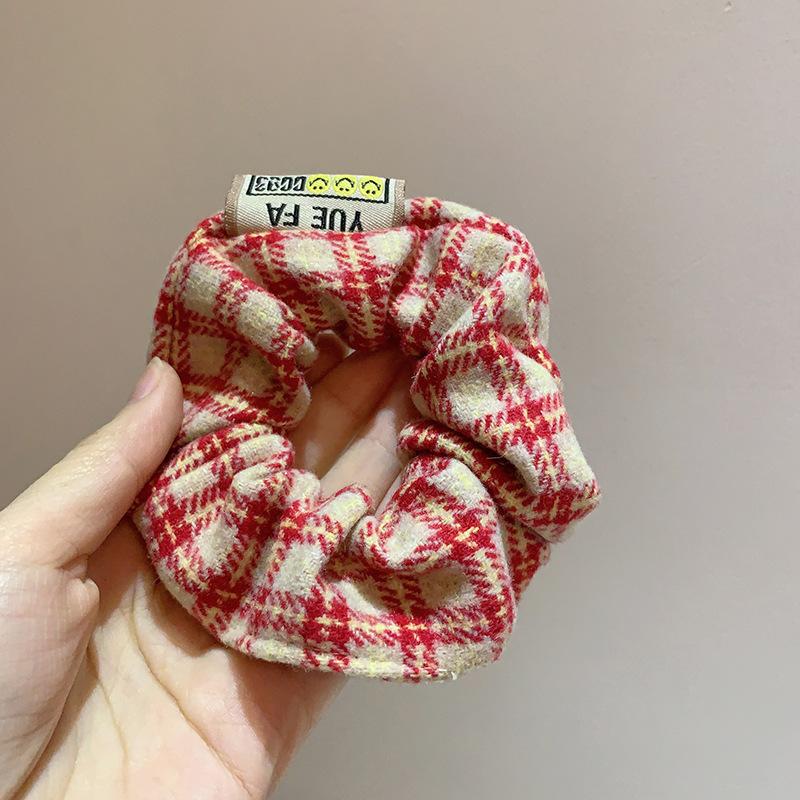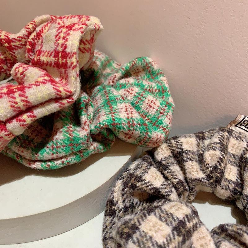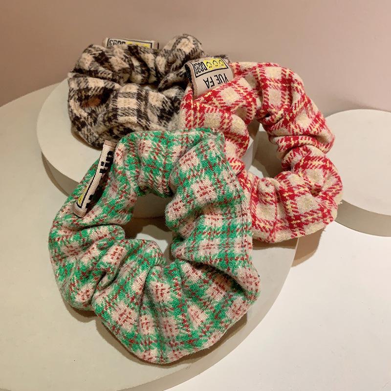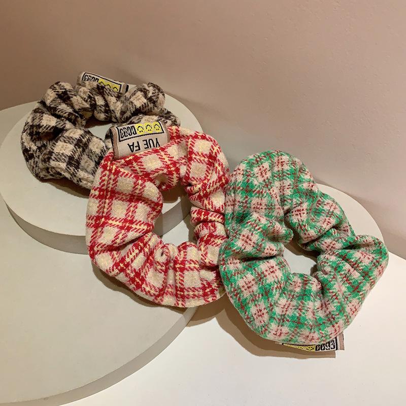 Corea del Sur, nuevo anillo de lana a cuadros retro para el intestino grueso, cuerda para el cabello, banda de goma para el cabello, accesorios para el cabello para mujeres