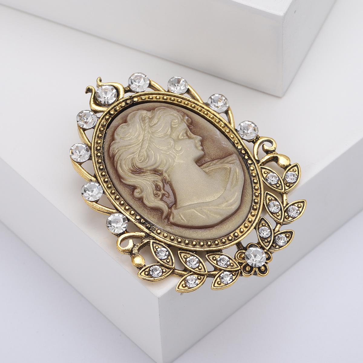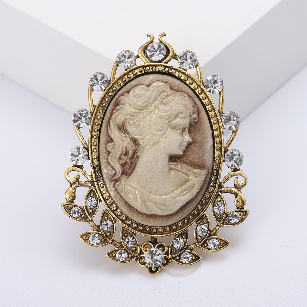 Broche de moda europea y americana de comercio exterior, muy vendido, creativo, retro, de belleza, con relieve de diamantes, con ramillete y alfiler para cuello.