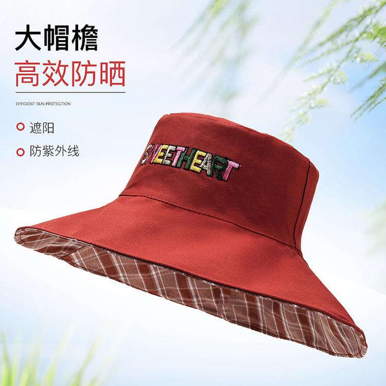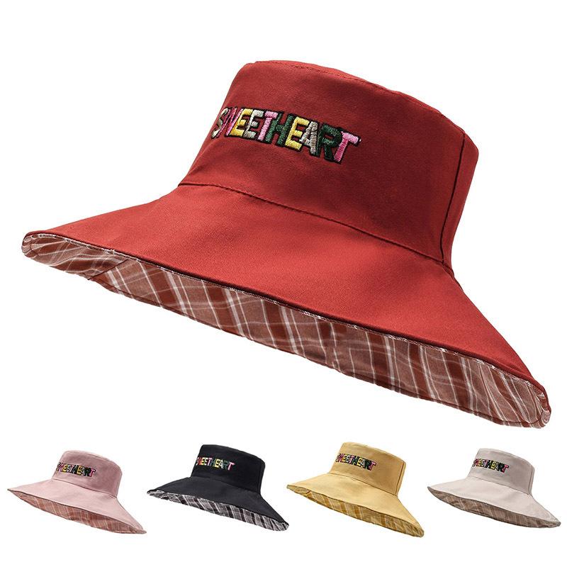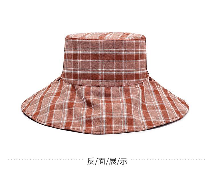 Sombrero de mujer a cuadros de doble cara nuevo de primavera 2023 sombrero grande de pescador sombrero para el sol sombrero de playa sombrilla mujer