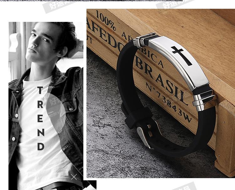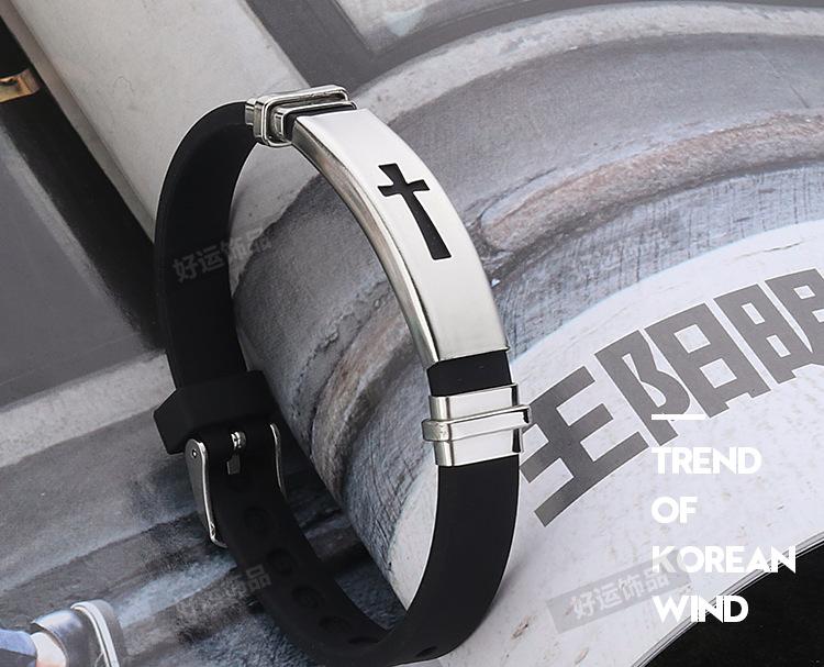 Suministro Directo de Fábrica pulsera deportiva de silicona acero inoxidable moda coreana Cruz hombre y mujer pareja pulsera de personalidad