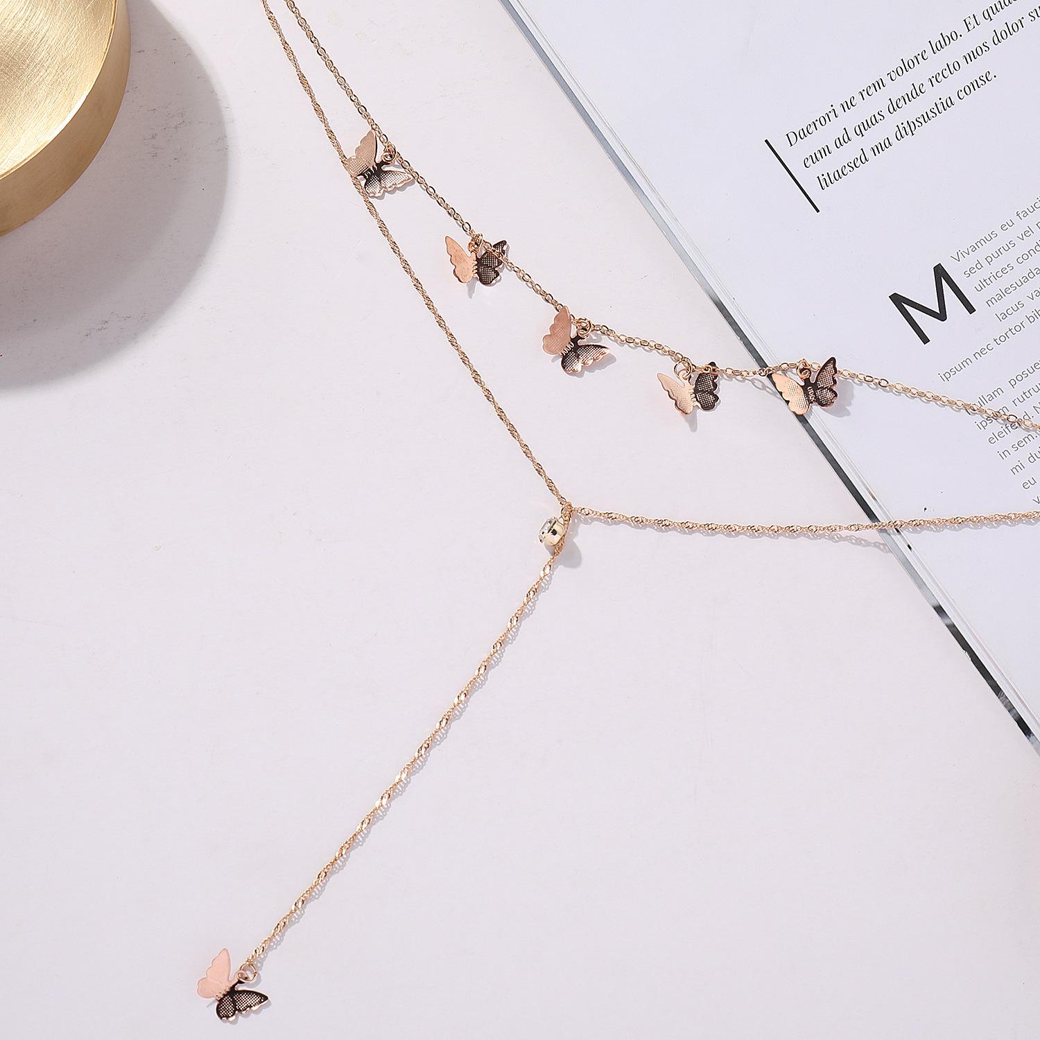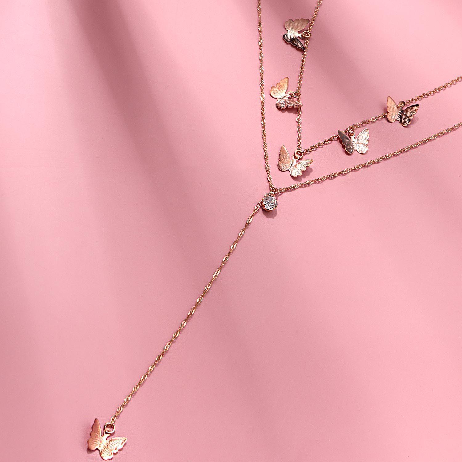 Moda de joyería transfronteriza europea y americana collar de aleación de doble capa con colgante de mariposa temperamento femenino borla pedrería collar largo