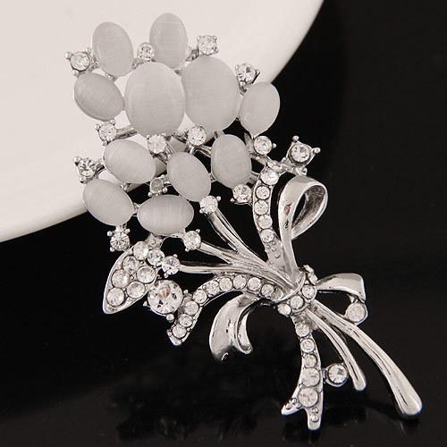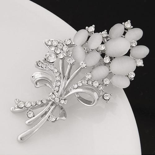 Broche de ramo de flores con diamantes de imitación y piedra de ojo de gato, exquisito, de moda europea y americana, accesorios para mujer, broche de alta calidad