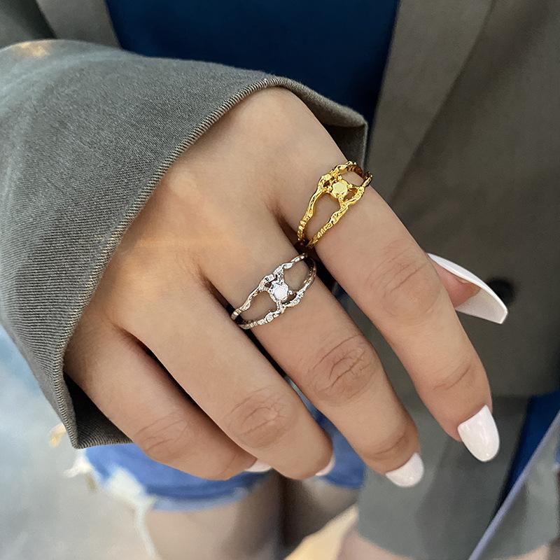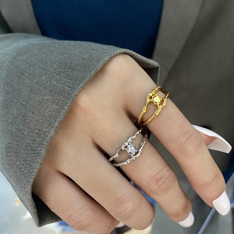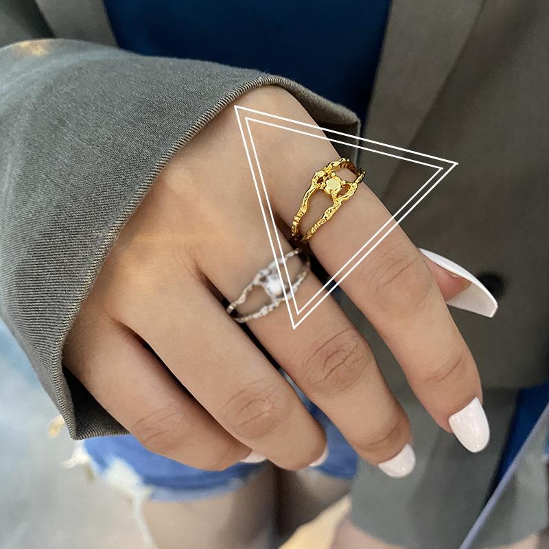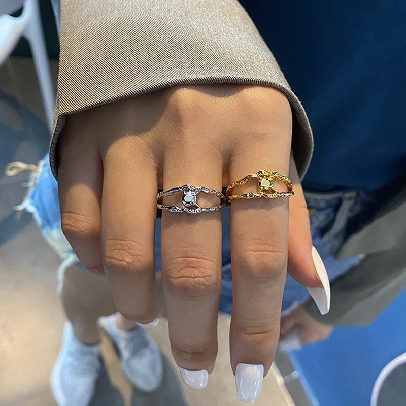 Anillo dorado irregular de moda estilo europeo y americano para mujer, temperamento simple y elegante, anillo abierto ajustable, joyería pequeña
