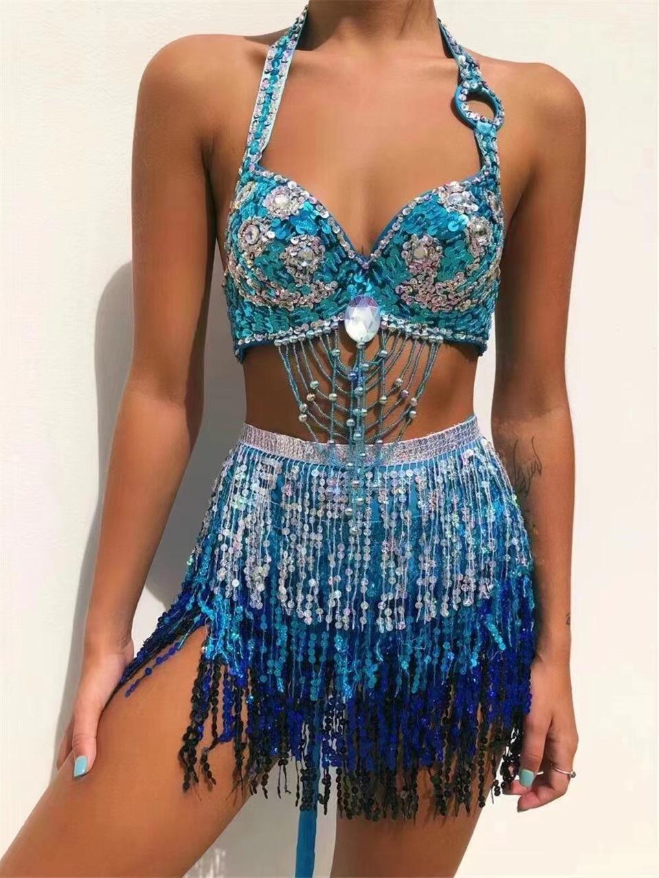 Nueva cadena de cintura con cuentas para danza del vientre, 4 lentejuelas, toalla para la cadera, cinturón con borlas, el rendimiento de baile puede ser una generación de cabello