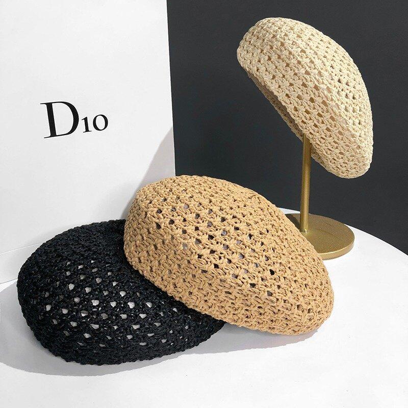 Boina para Niños Primavera y Verano Calada Estilo Extranjero Gorro de Calabaza Estudiantes Combinación con Todo Viajes Personalizada Artística Boina Gorro de Pintor