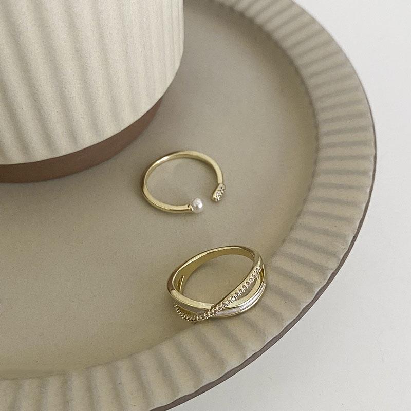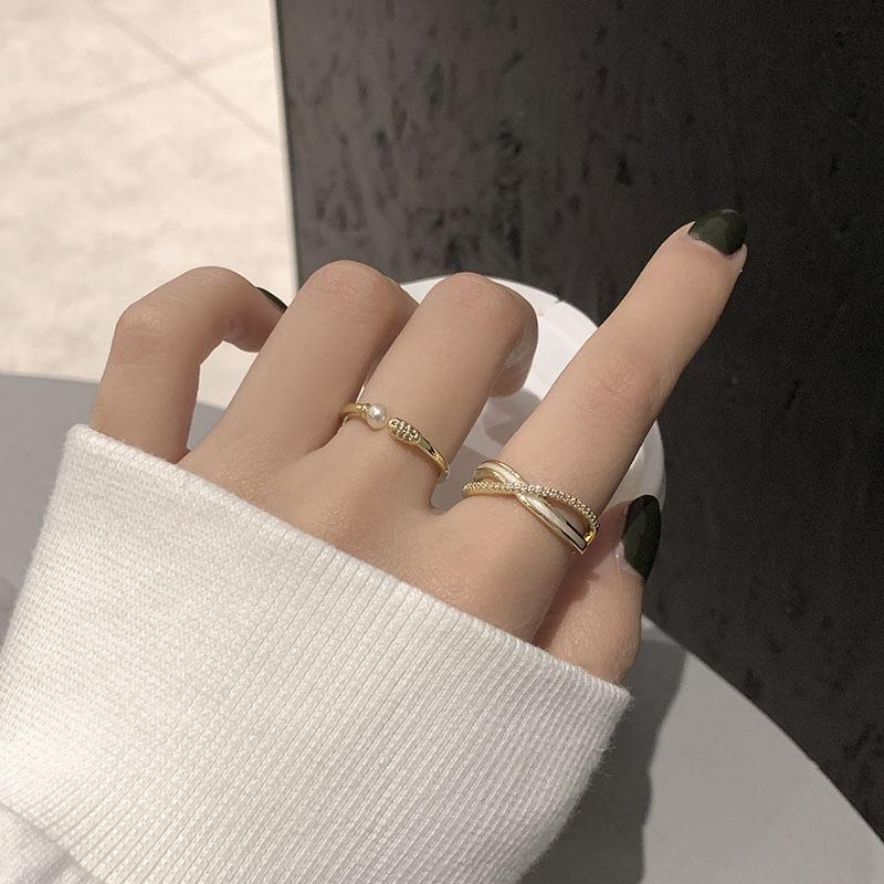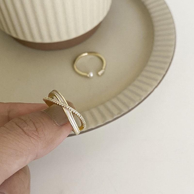 Anillo Abierto Minimalista de Cruz Zirconia Perla para Mujer, Moderno y Elegante, Anillo Versátil de Lujo Ligero