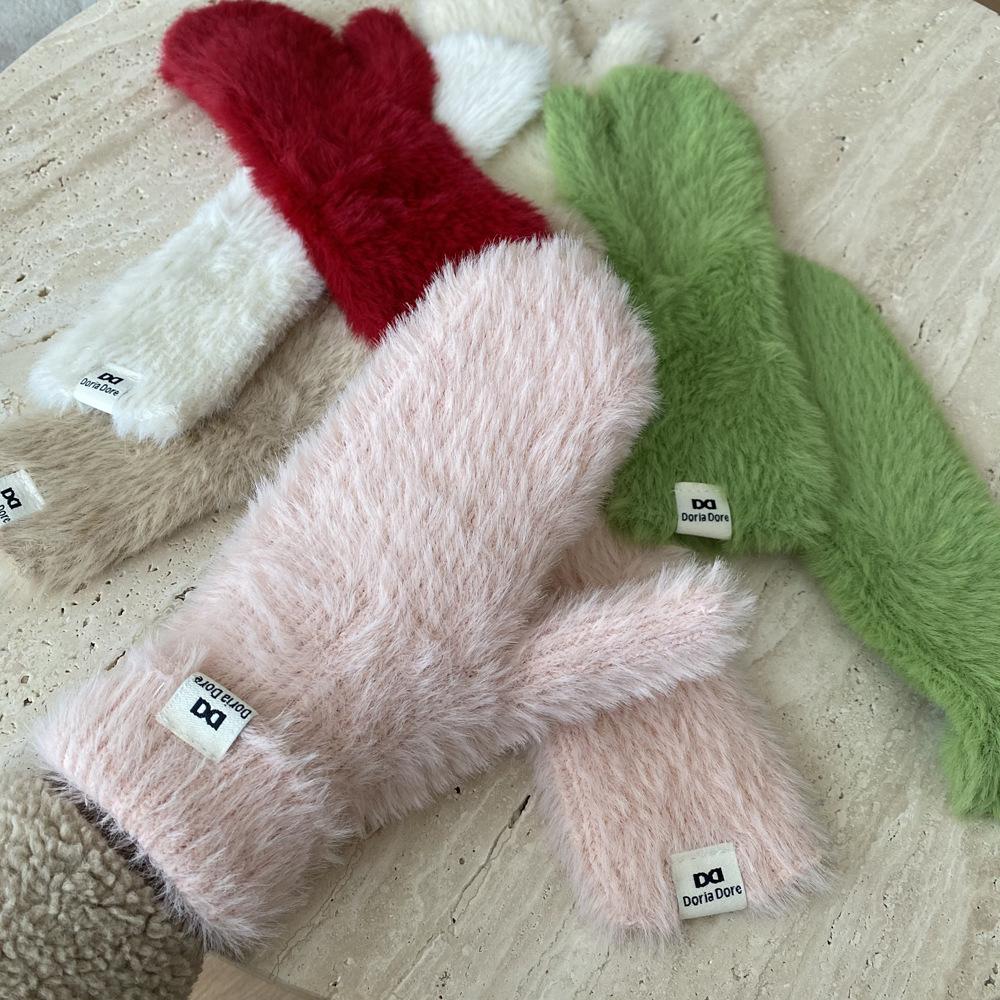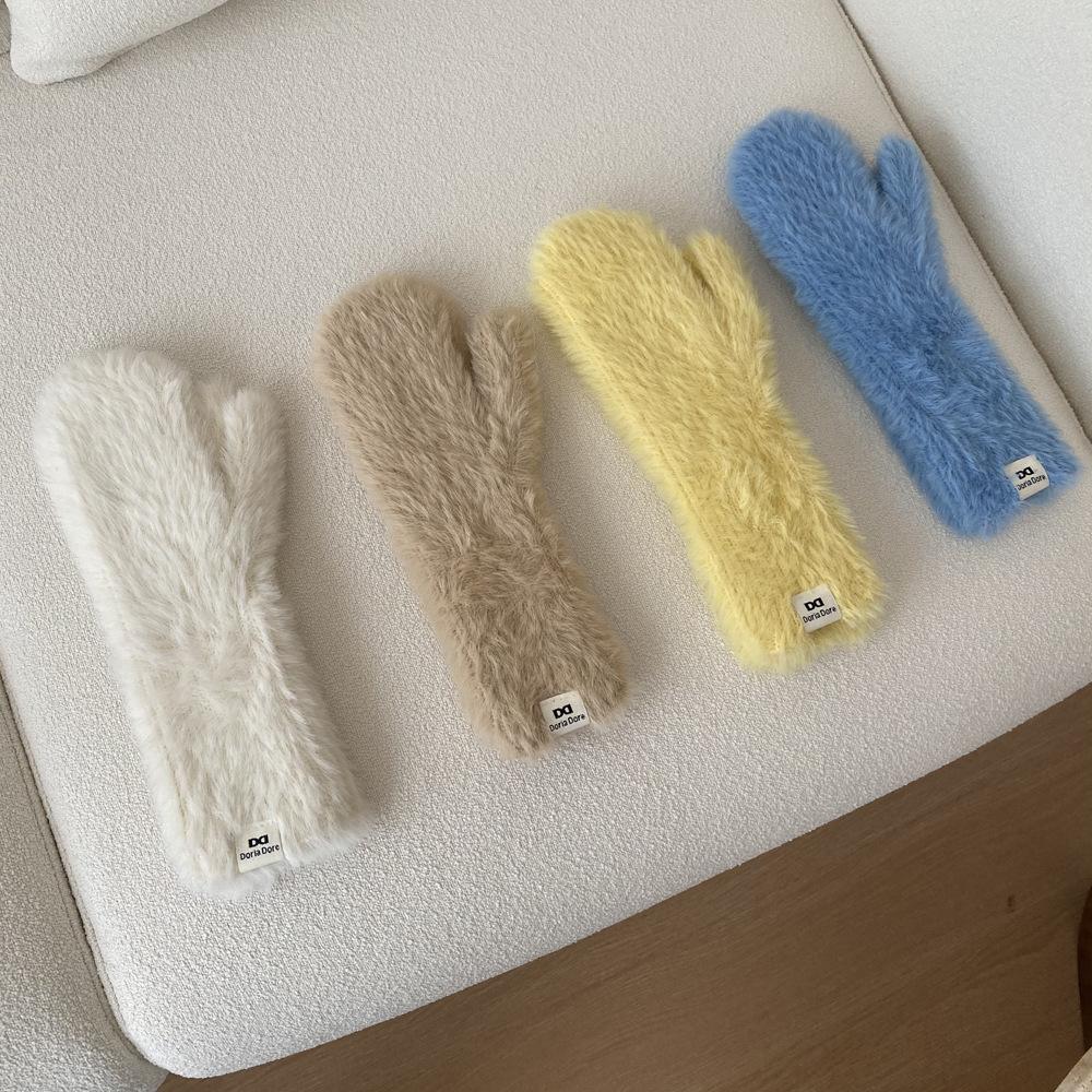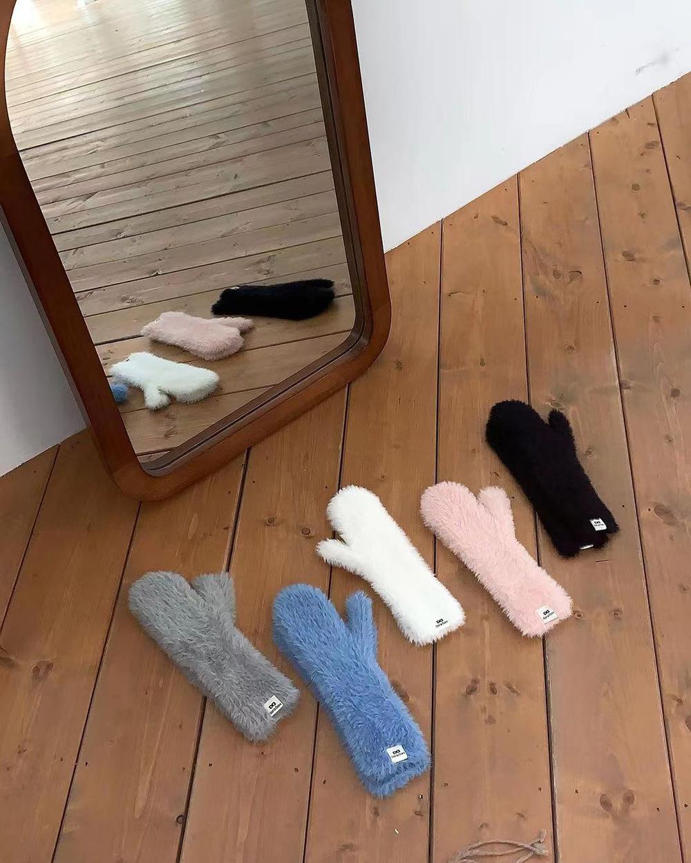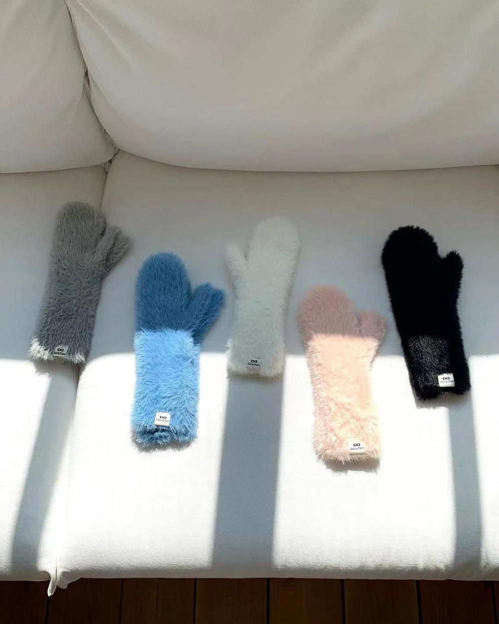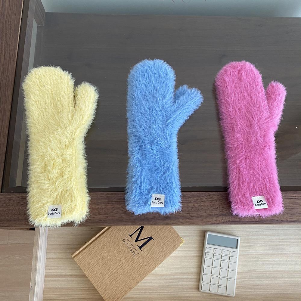 Guantes peludos lindos de color caramelo de invierno de Corea del Sur 2023, guantes peludos de estilo coreano, mitones cálidos de otoño e invierno