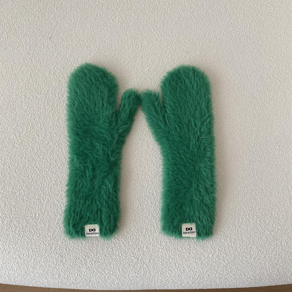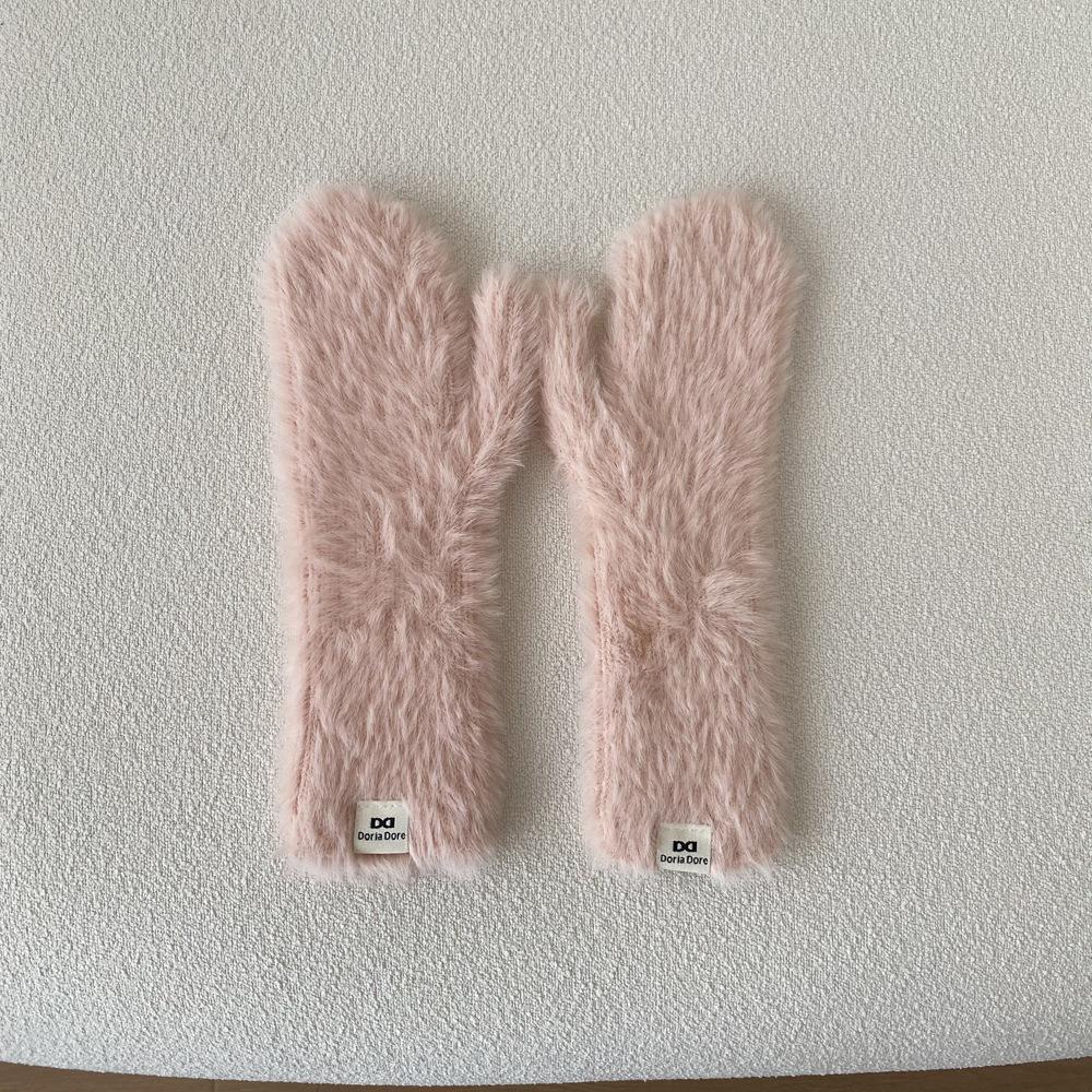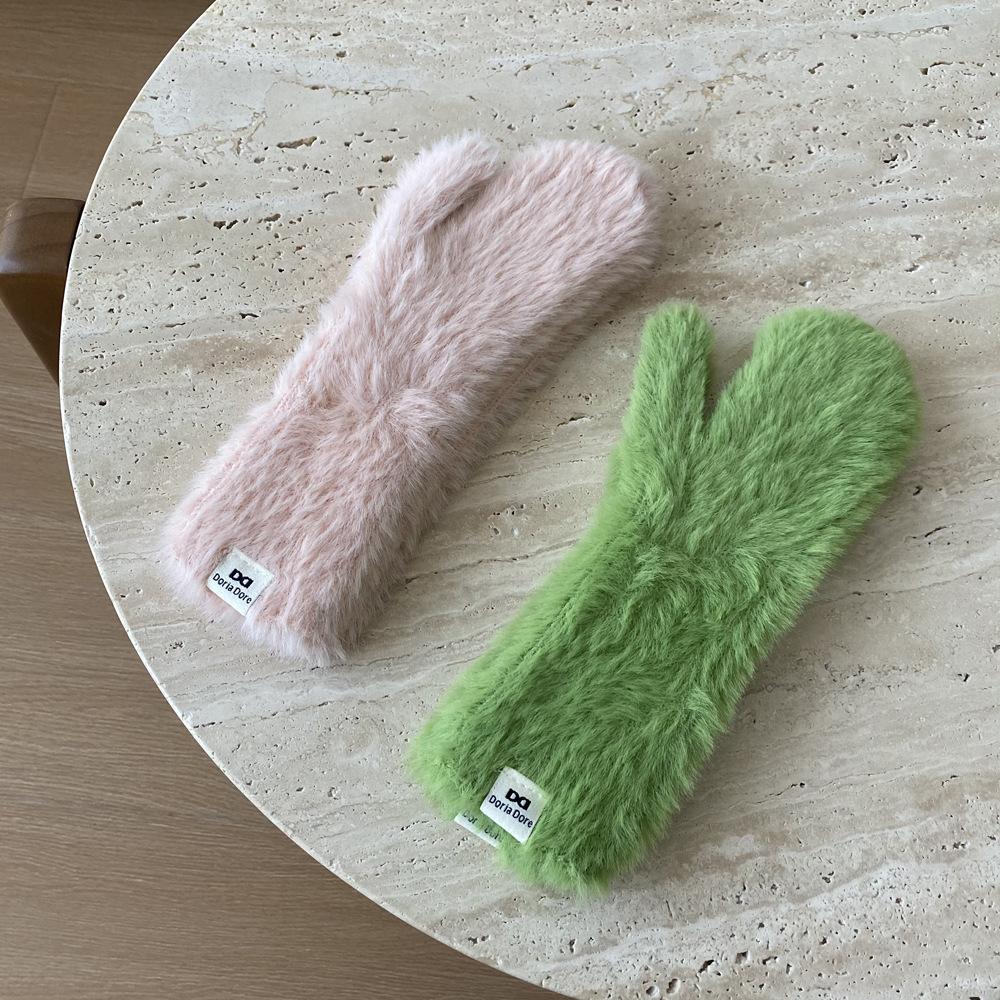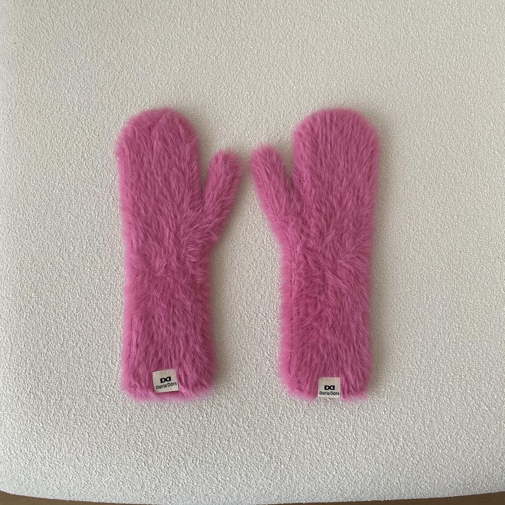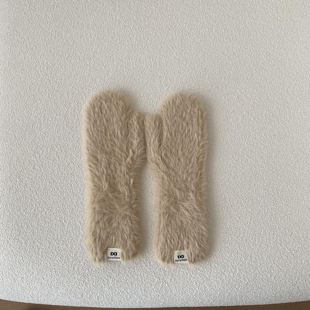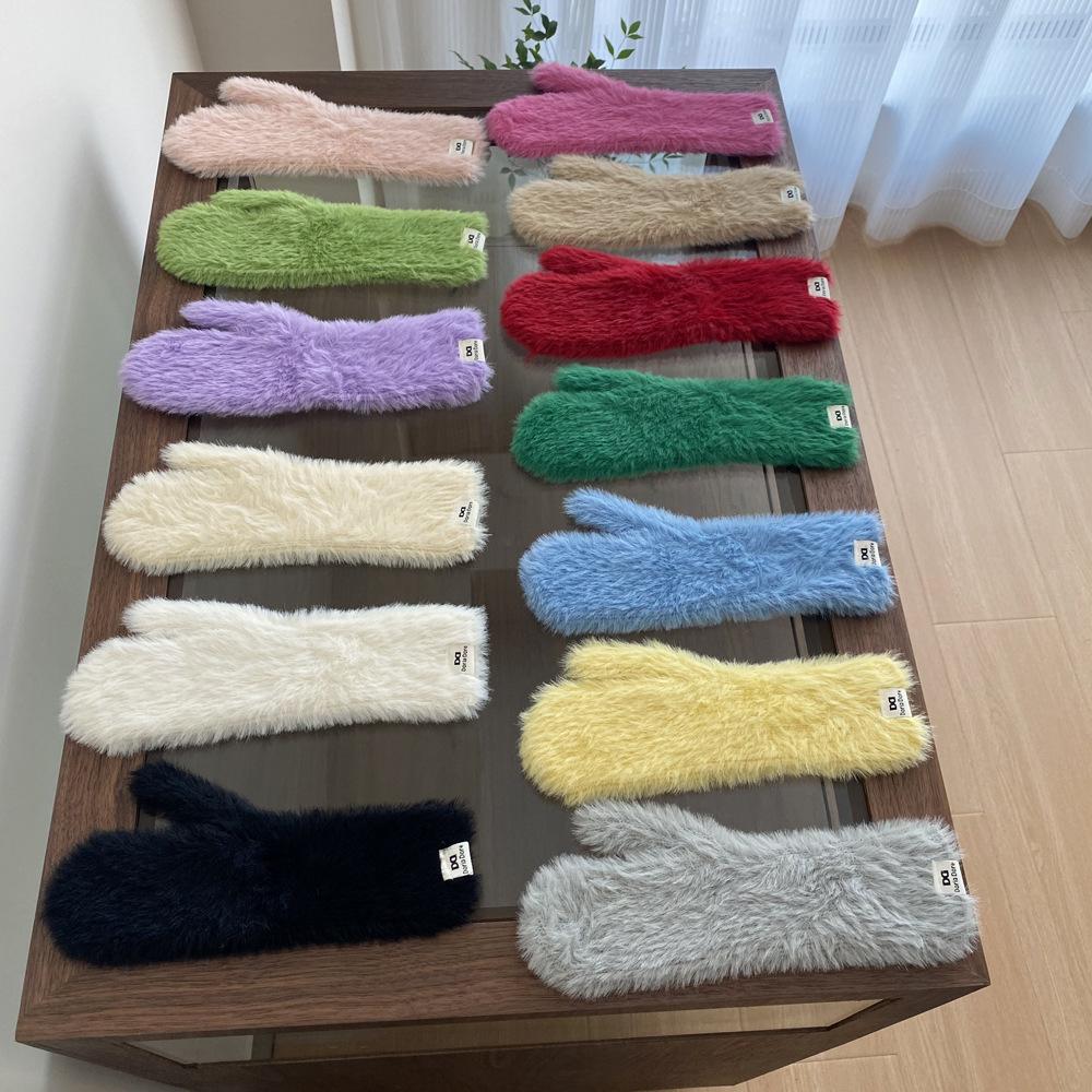 Guantes peludos lindos de color caramelo de invierno de Corea del Sur 2023, guantes peludos de estilo coreano, mitones cálidos de otoño e invierno