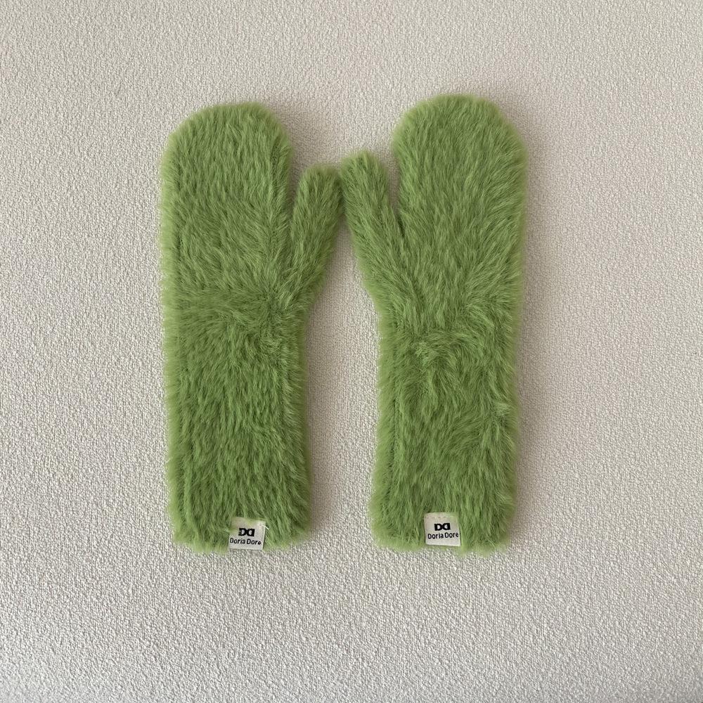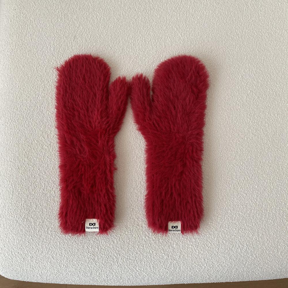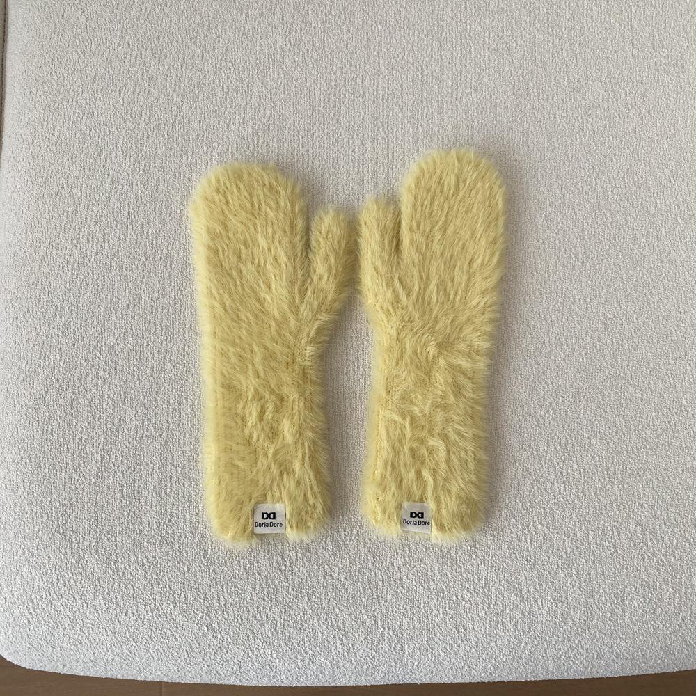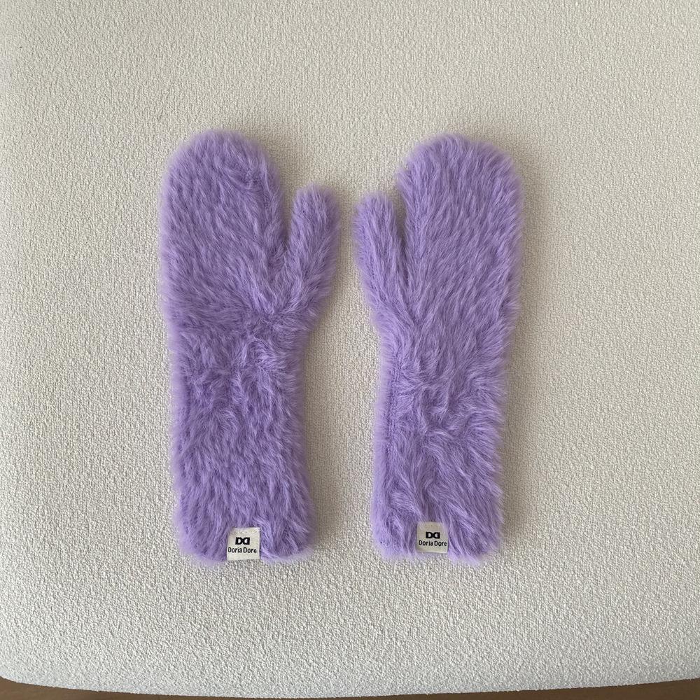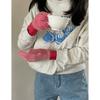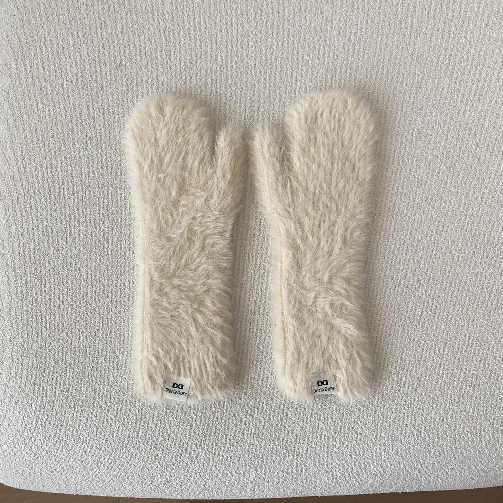 Guantes peludos lindos de color caramelo de invierno de Corea del Sur 2023, guantes peludos de estilo coreano, mitones cálidos de otoño e invierno