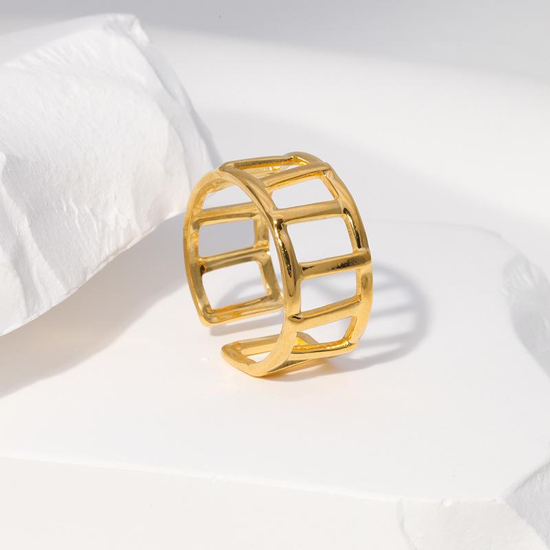 Anillo Europeo y Americano de Acero Inoxidable para Mujer Diseño Nicho Geométrico Anillo Abierto No se Desvanece Anillo Simple de Acero Titanio Venta al por Mayor