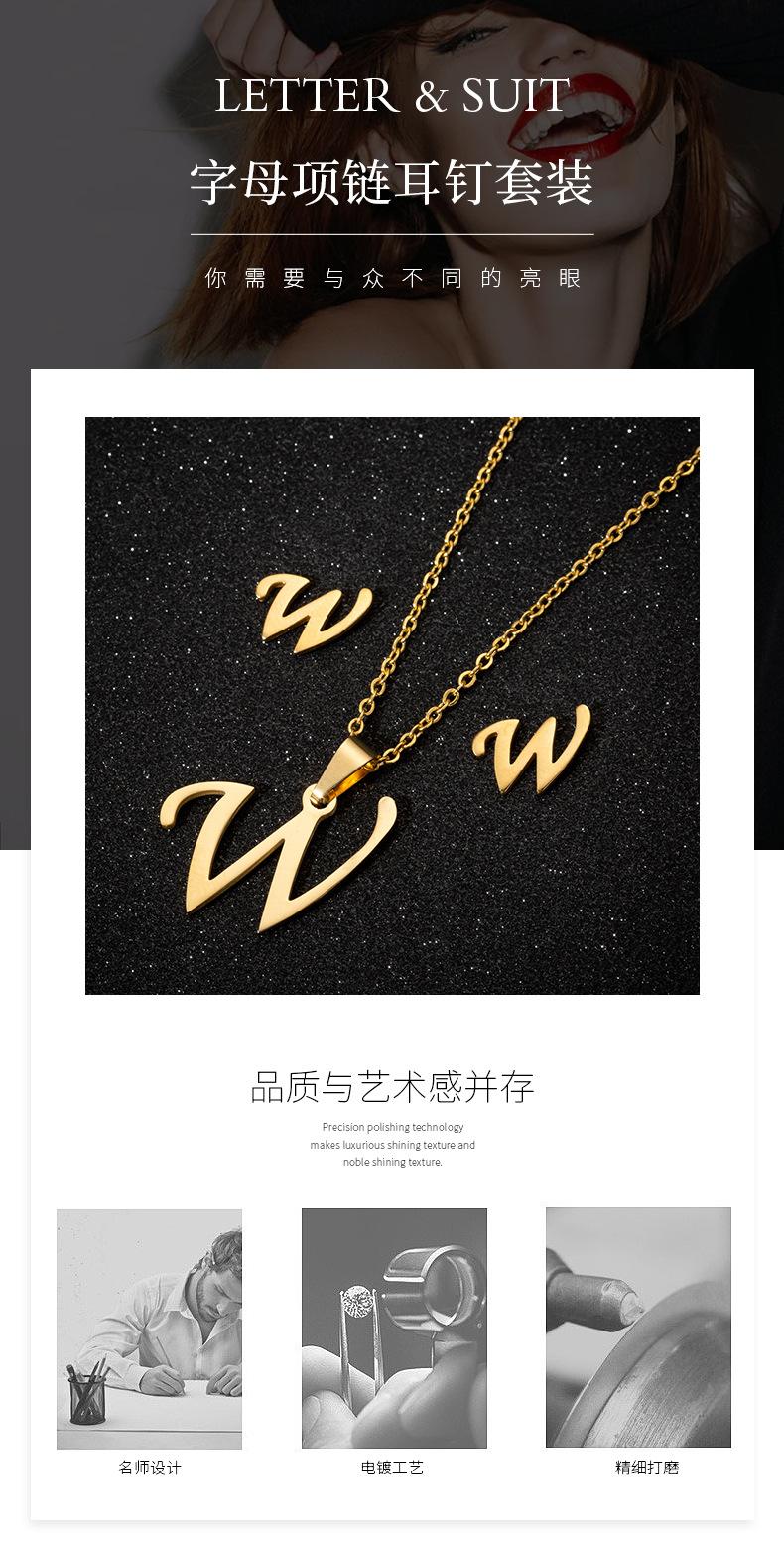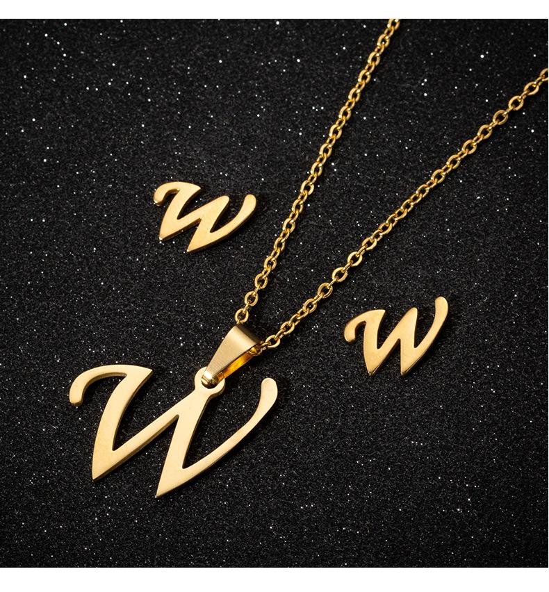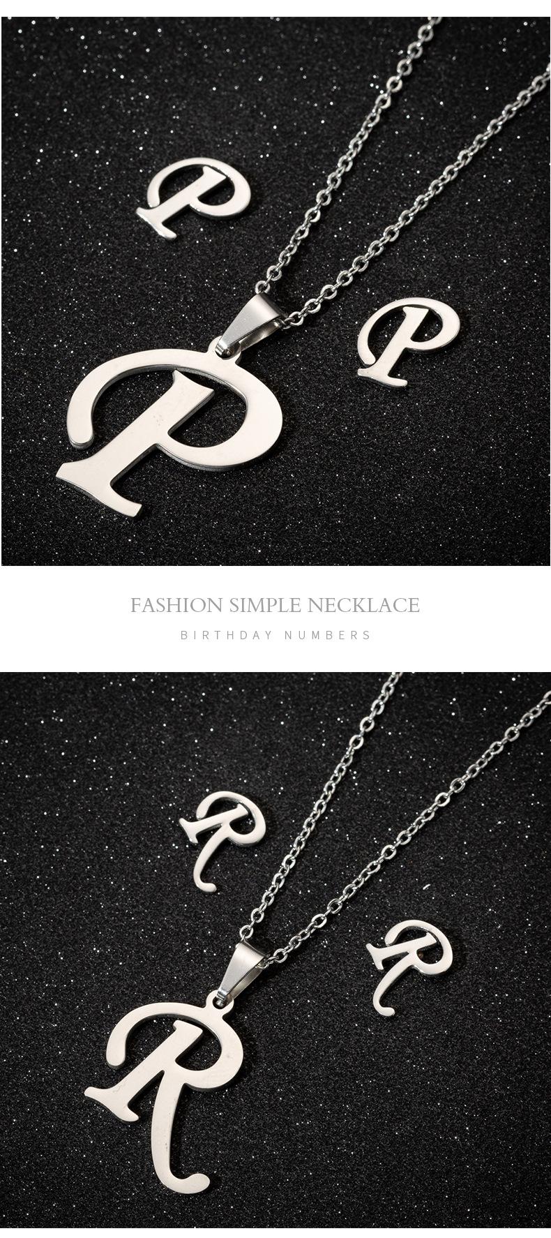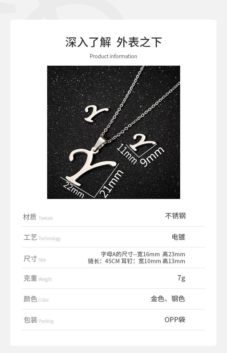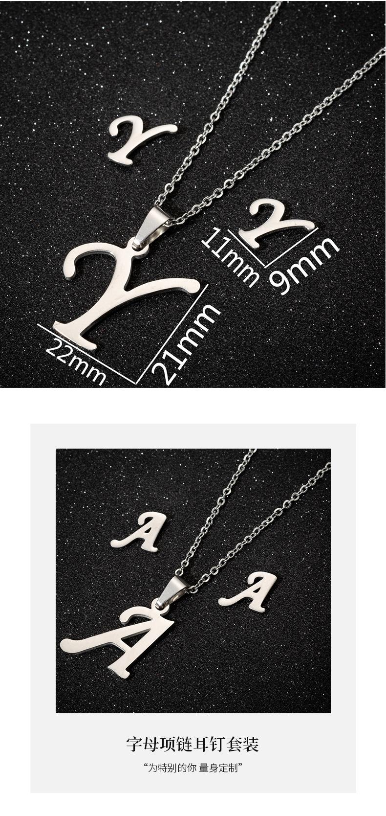 Conjunto de collar con colgante de 26 letras de acero inoxidable, pendientes nuevos europeos y americanos, collar con letras para damas, accesorios de nicho al por mayor