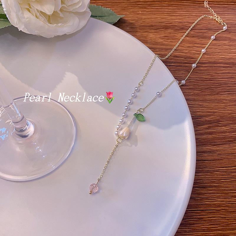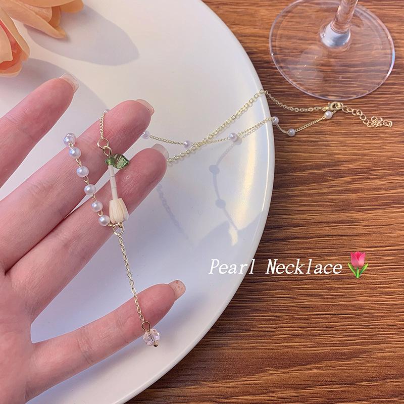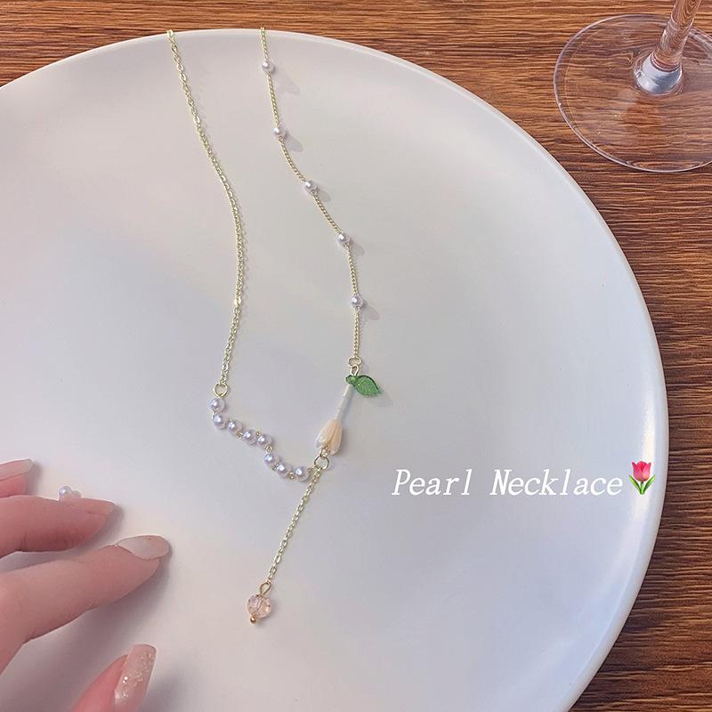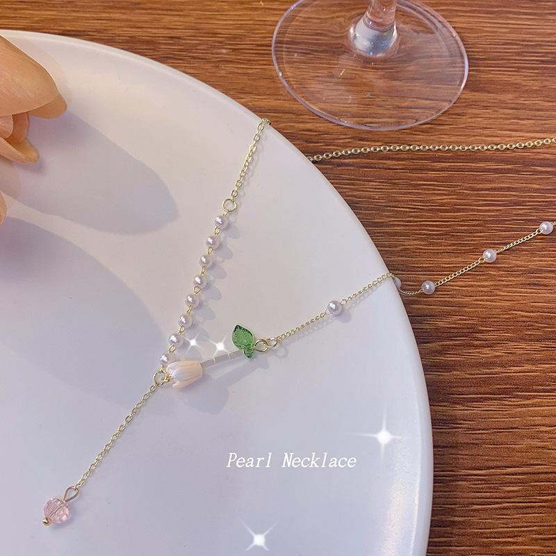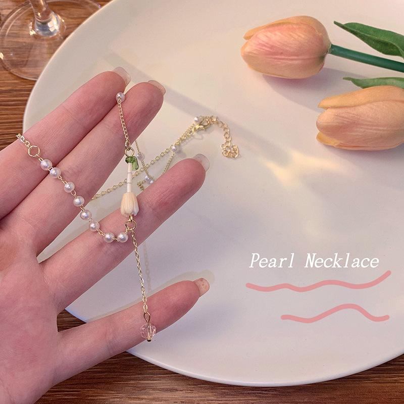 Collar de estilo coreano con perlas de tulipán y costuras para mujer, estilo nicho de alta gama, dulce y fresco, cadena de clavícula a la moda.