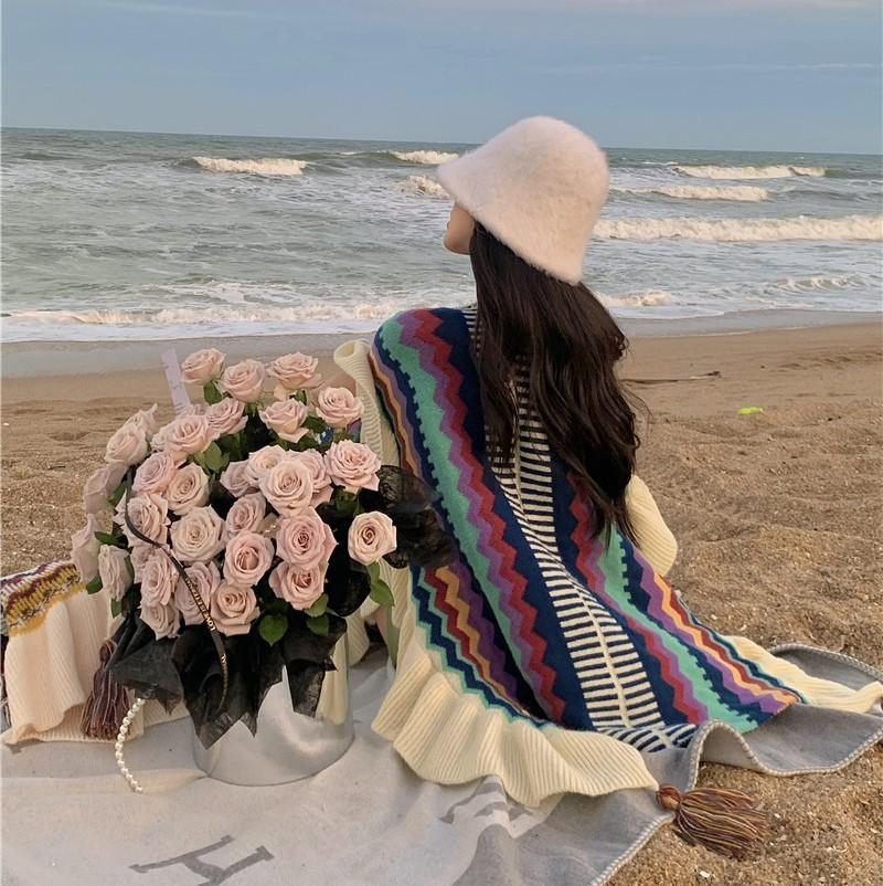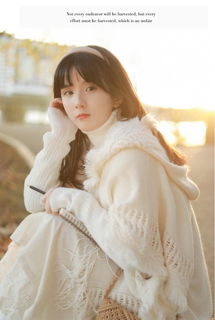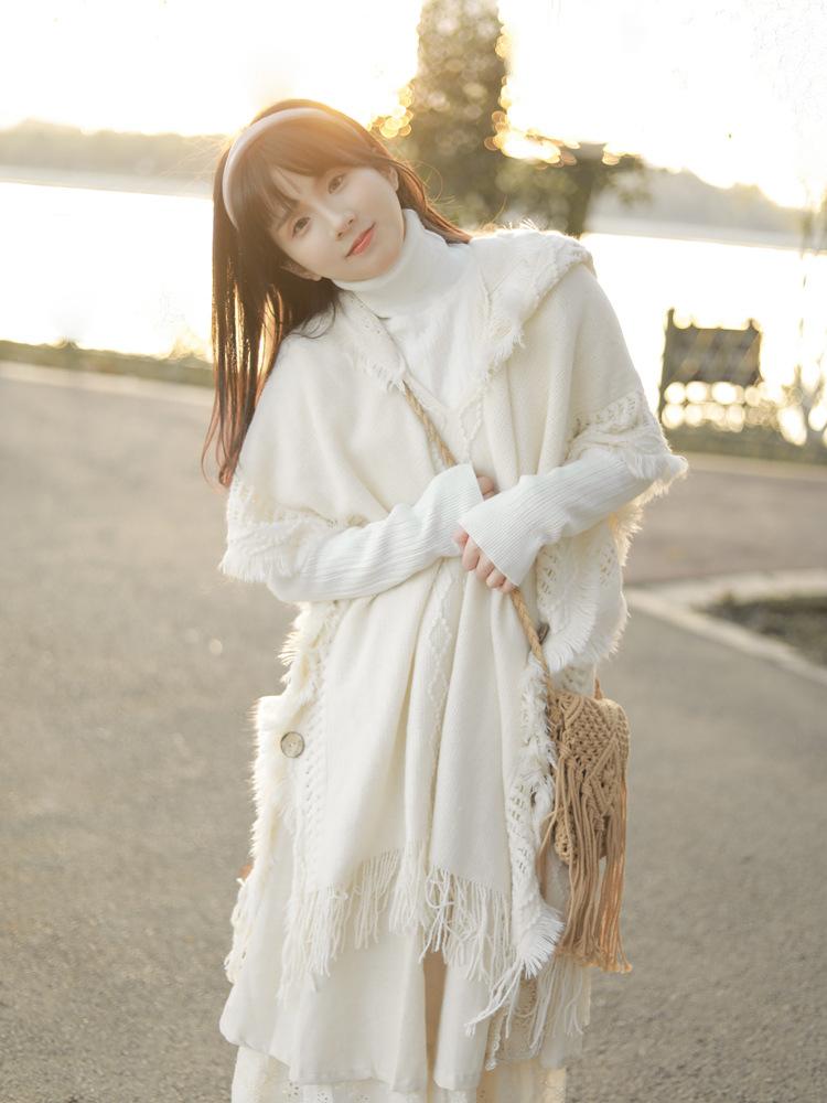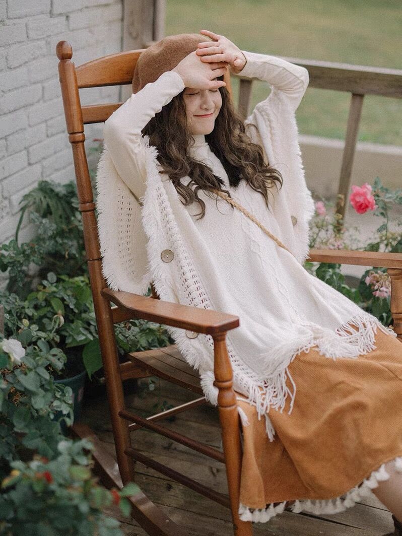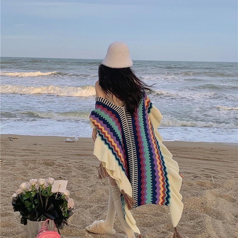 Suéter bohemio con borlas y chal estilo Mori, tejido de punto, capa de viaje de pastizales de Xinjiang, bufanda con capucha, combina con todo para mujer