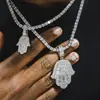 Joyería Hip-Hop Europea y Americana Colgante de Palma Incrustado de Circonita Mano de Fátima Punk Rap Collar Hiphop de Moda para Hombres