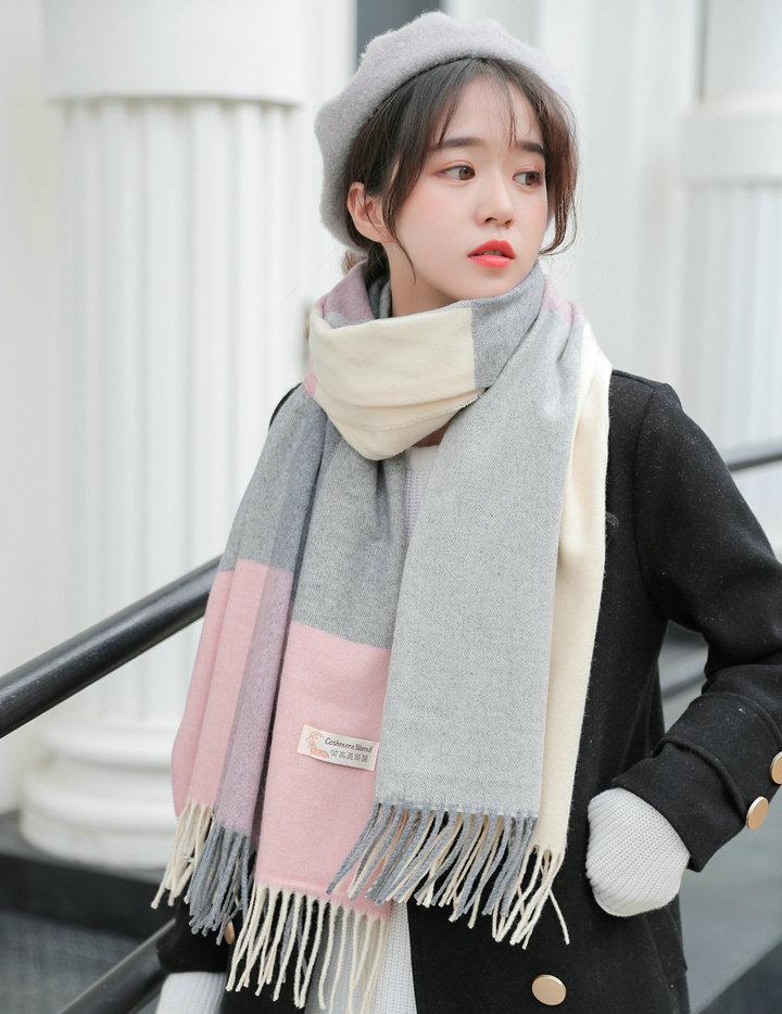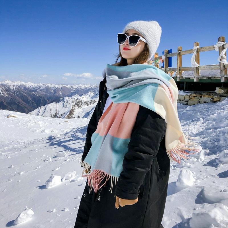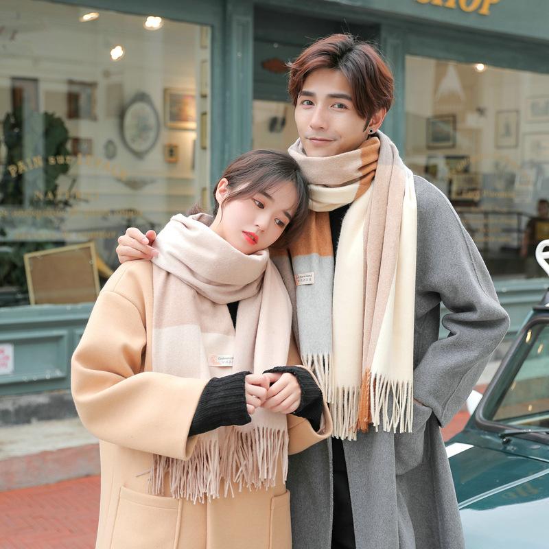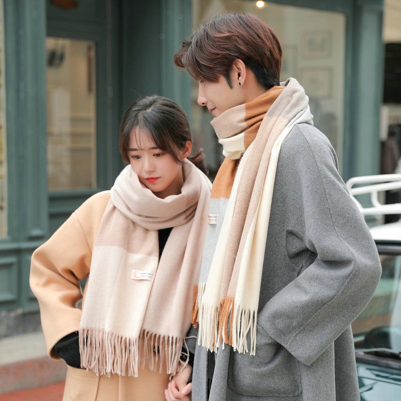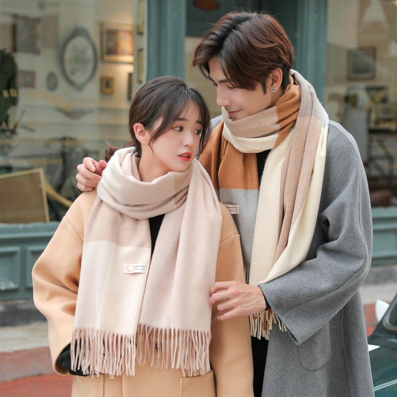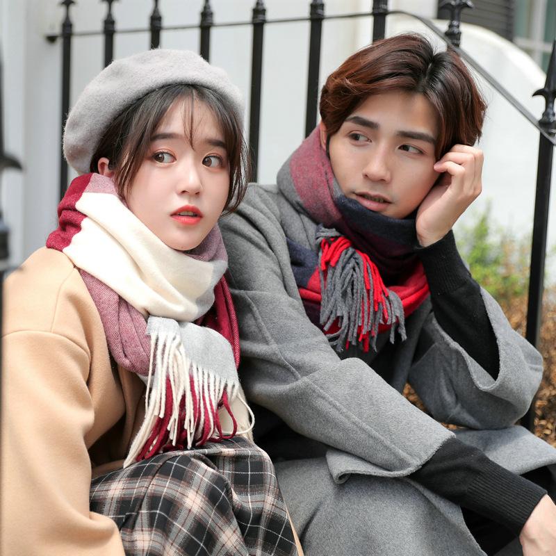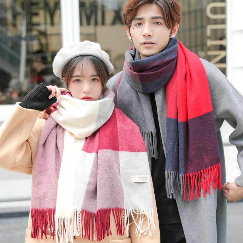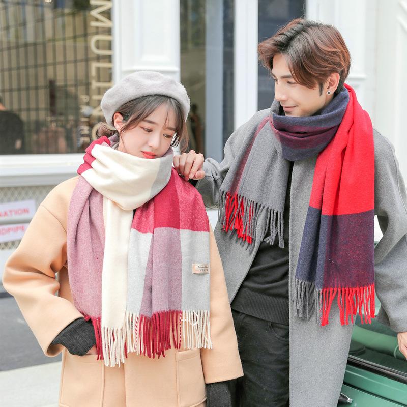 Bufanda de lana a cuadros de invierno coreana para mujer, cálida, de colores a juego, sencilla, para parejas, larga, cruzada