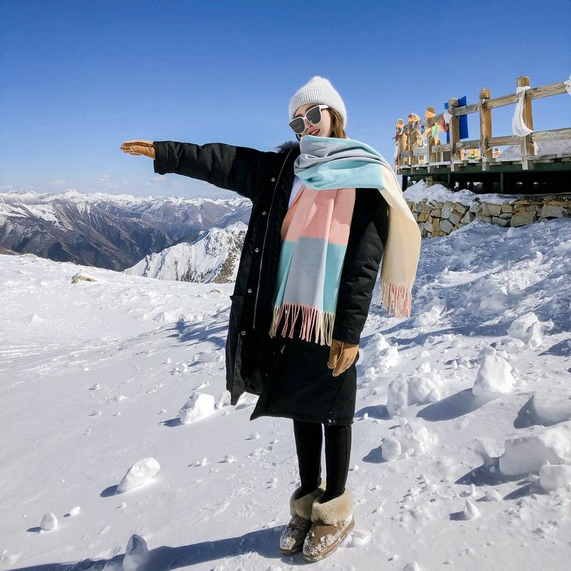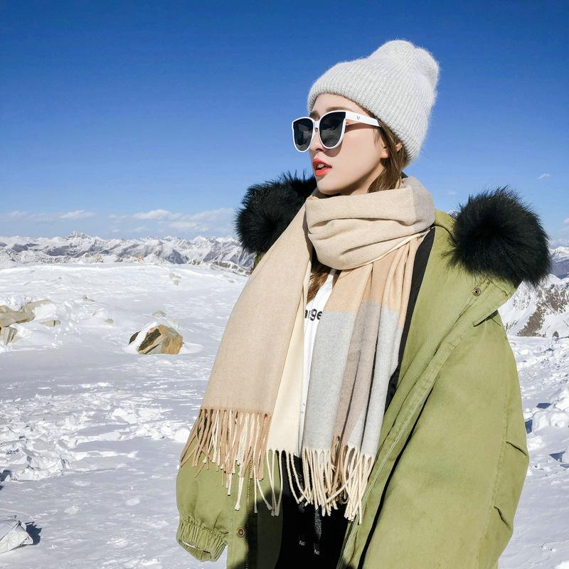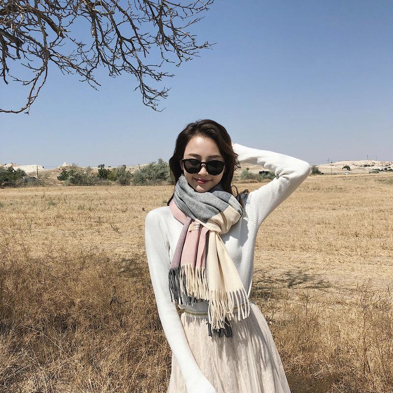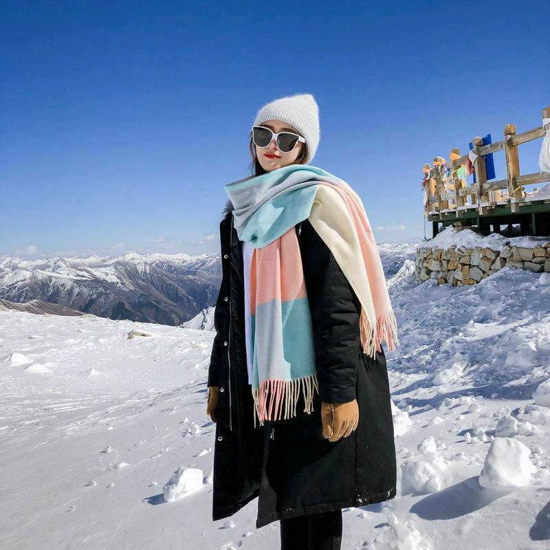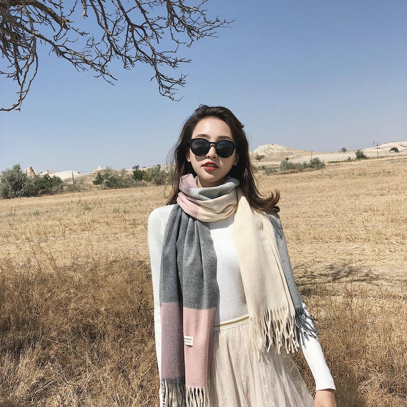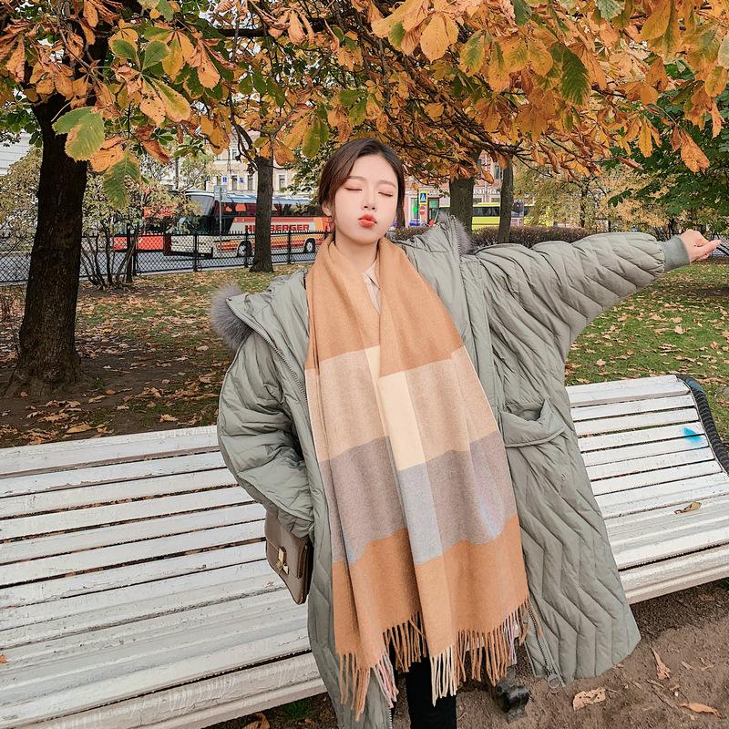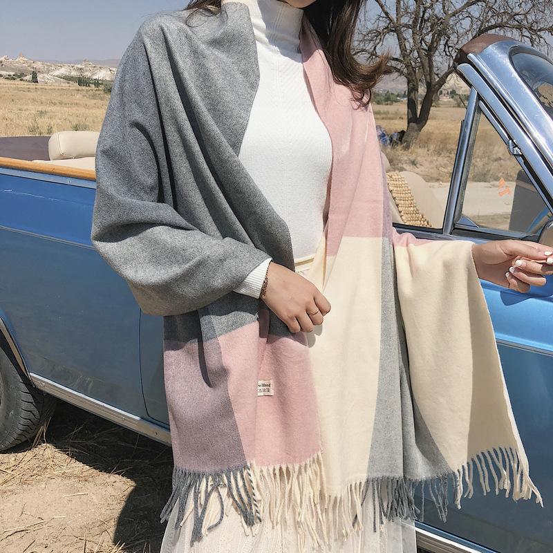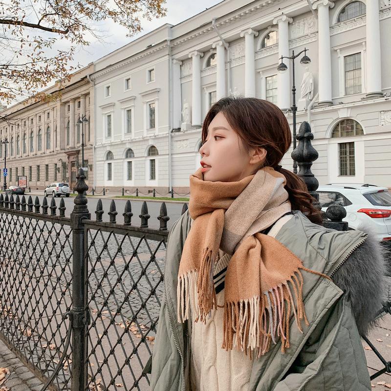 Bufanda de lana a cuadros de invierno coreana para mujer, cálida, de colores a juego, sencilla, para parejas, larga, cruzada