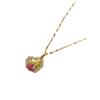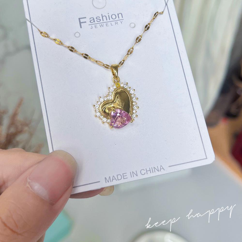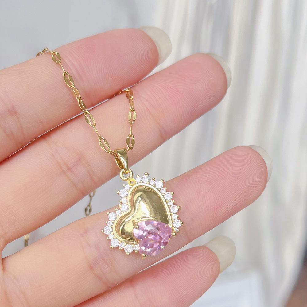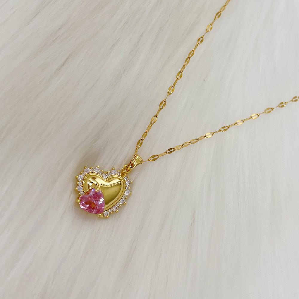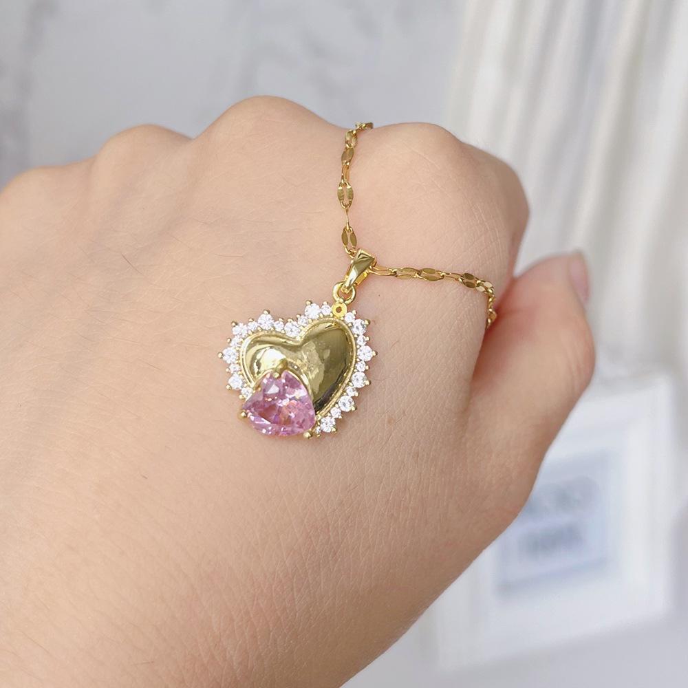 Collar con colgante de doble amor, nuevo, de cobre rosa y circonita, con diseño de nicho de lujo, cadena de clavícula de acero y titanio.