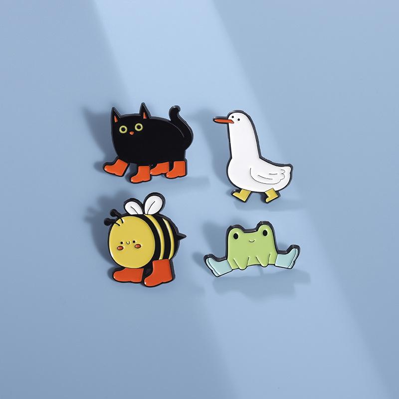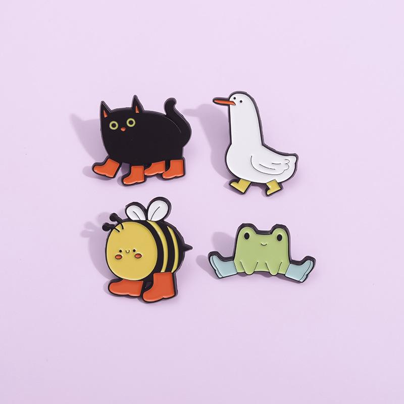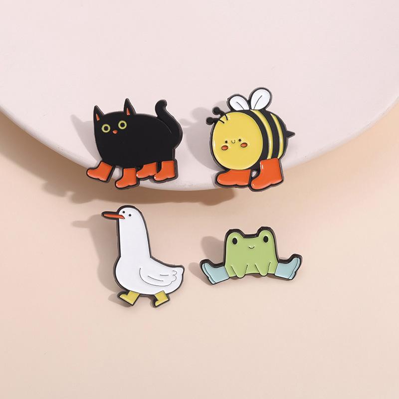 Broche de animal a juego con botas de pato y abeja, linda insignia de metal, gato negro, exquisito regalo para niña