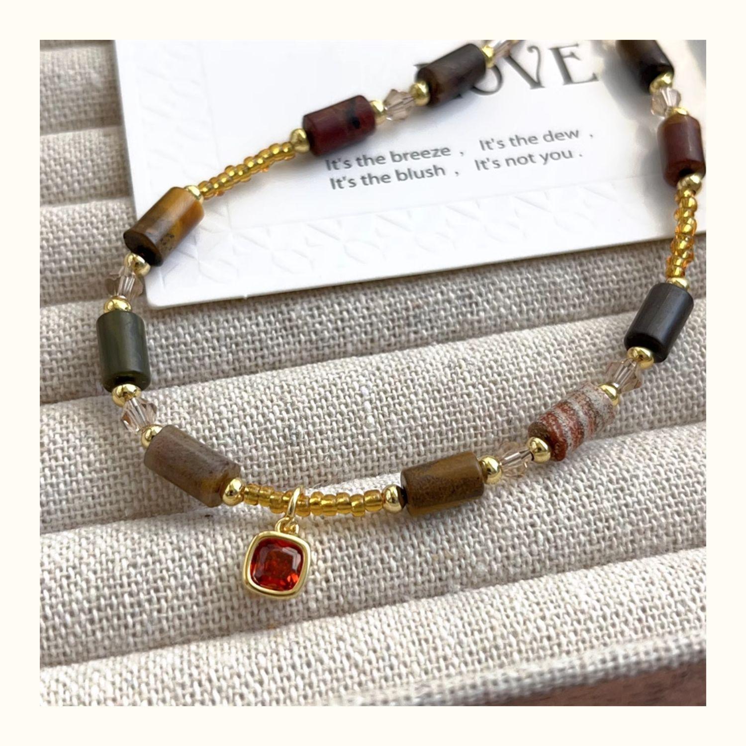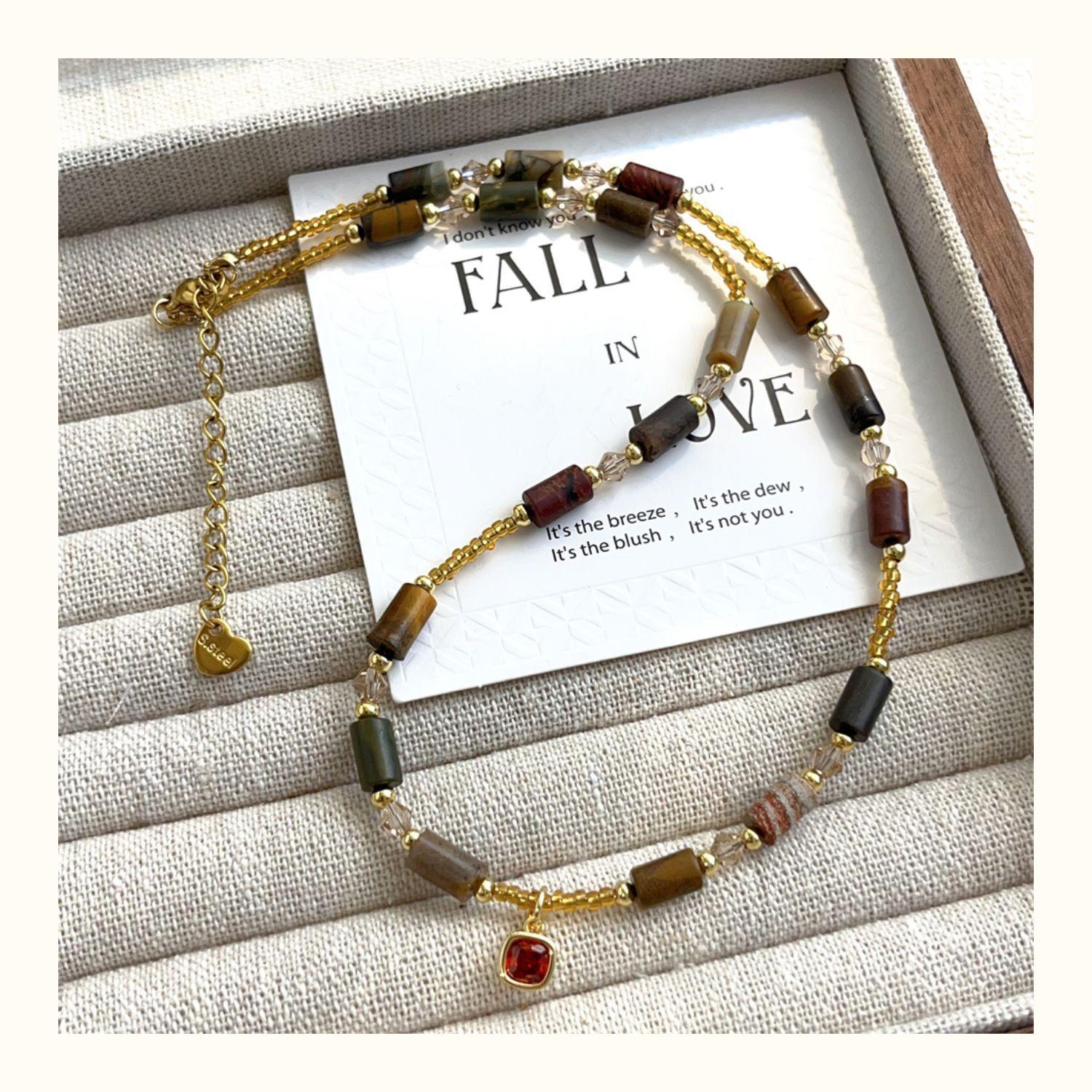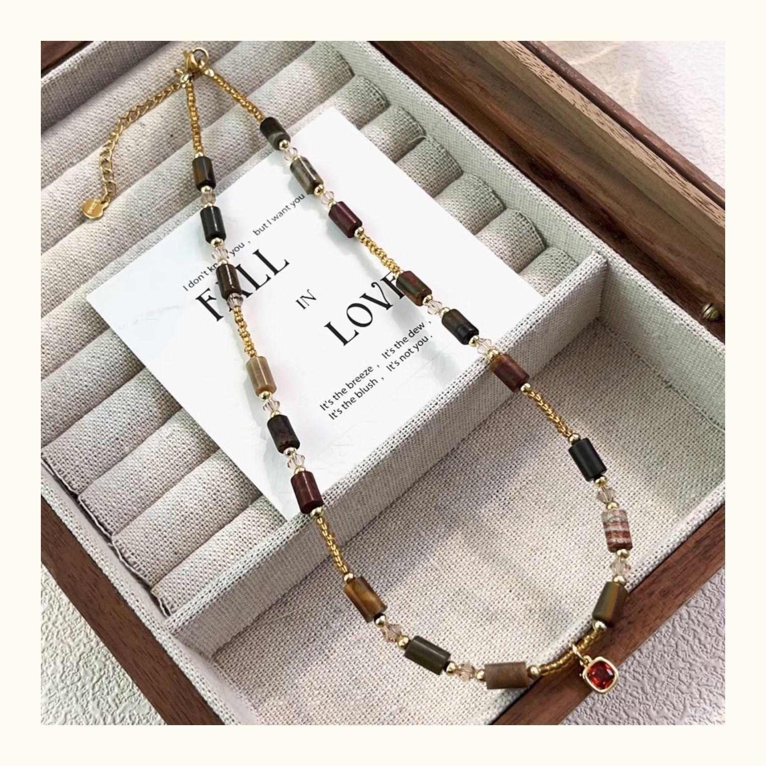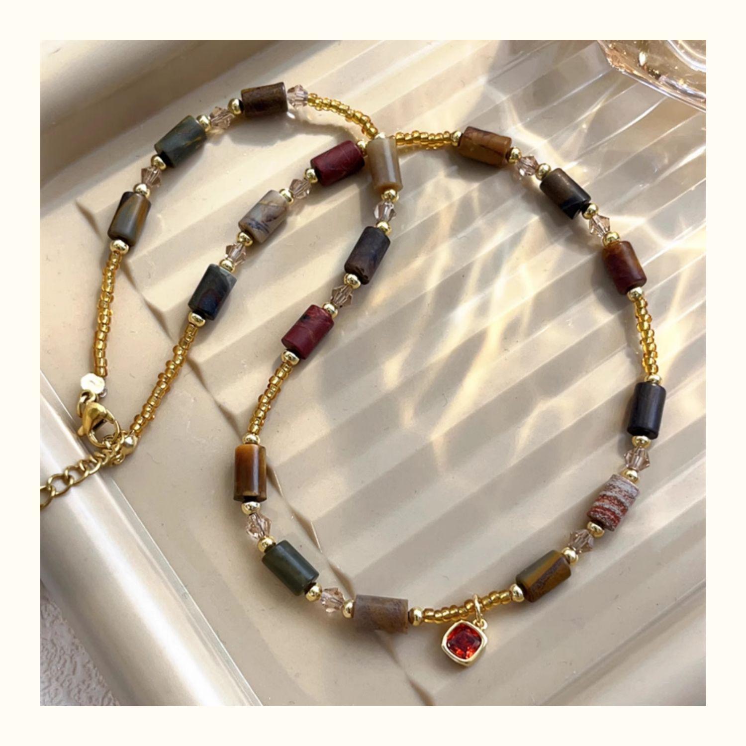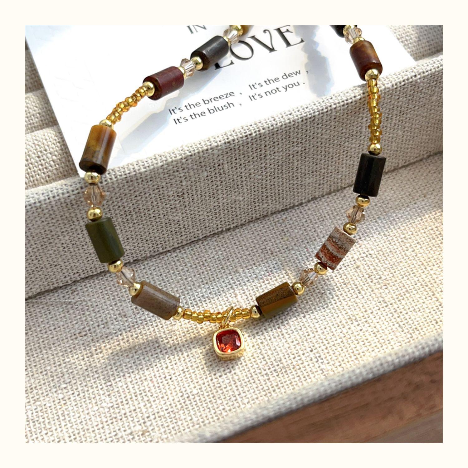 Collar de piedra natural de alta calidad para mujer, colgante de cristal de diamante rojo pequeño con cuentas, cadena de clavícula, nuevo estilo chino, cadena de collar de lujo ligero retro