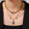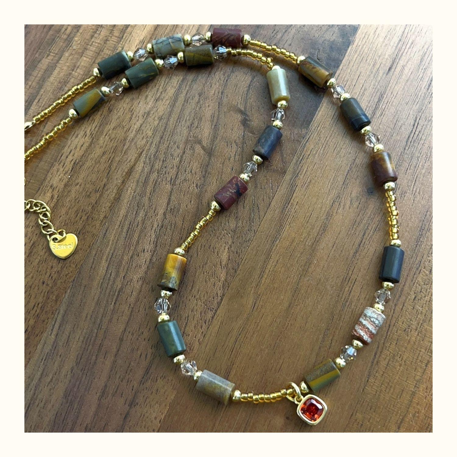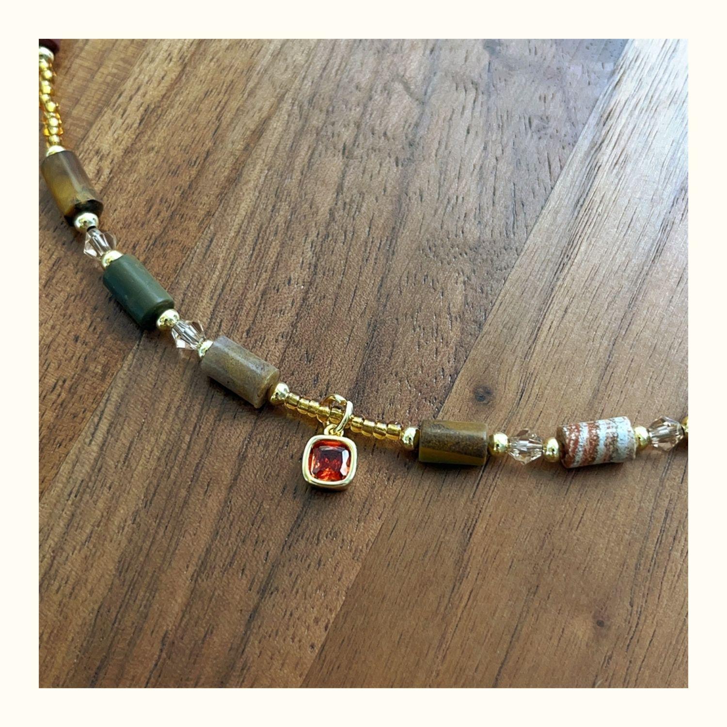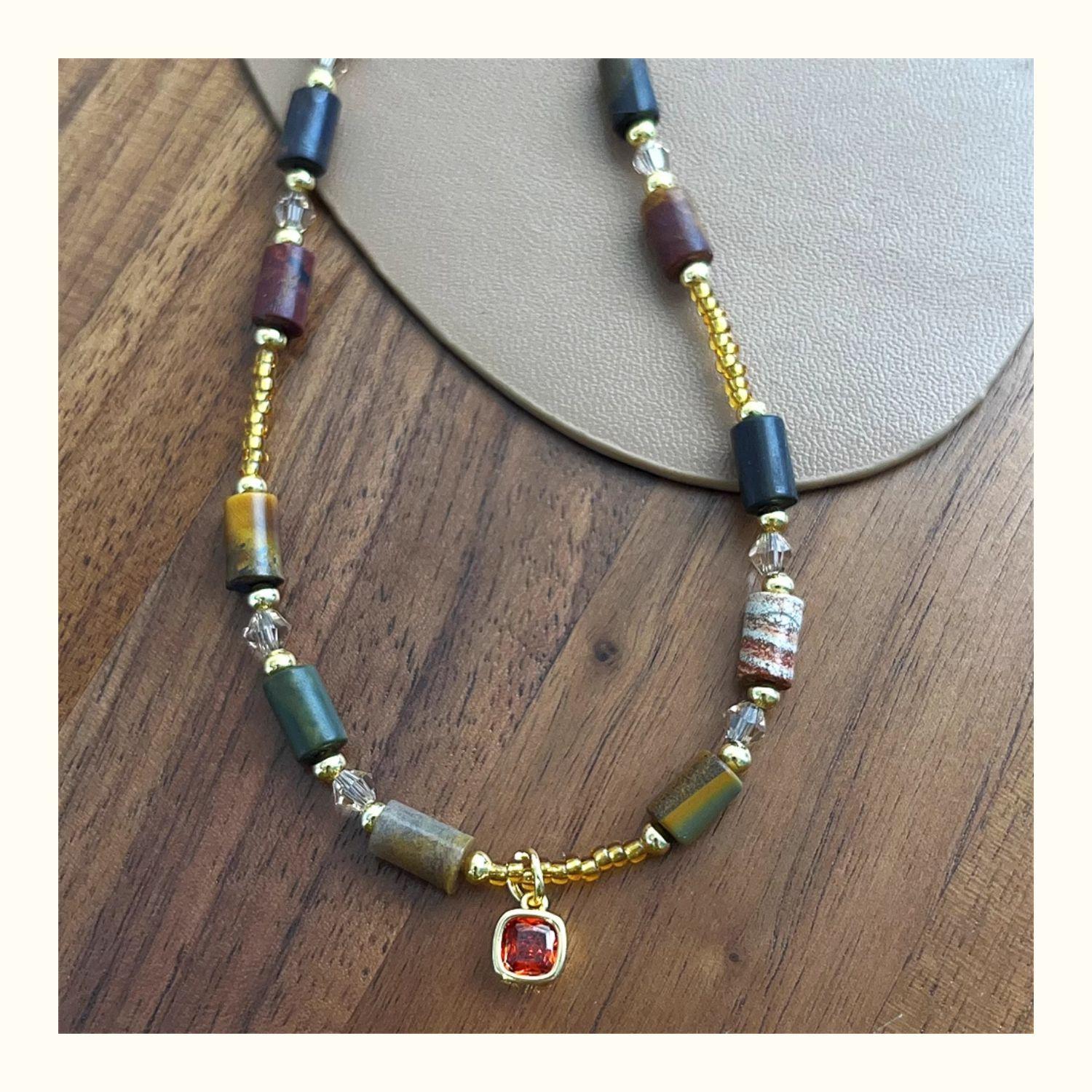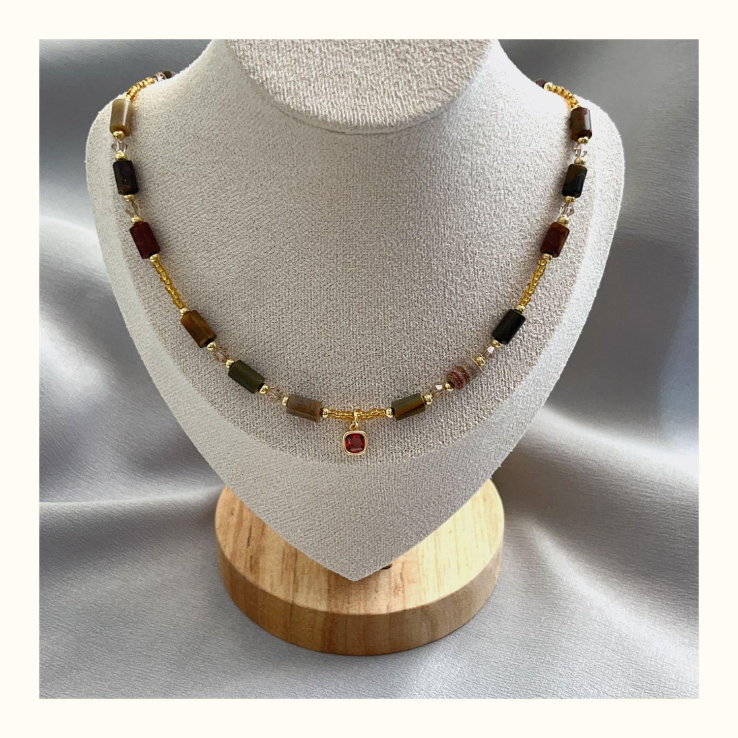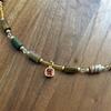 1752 small red diamond dark natural stone necklace
