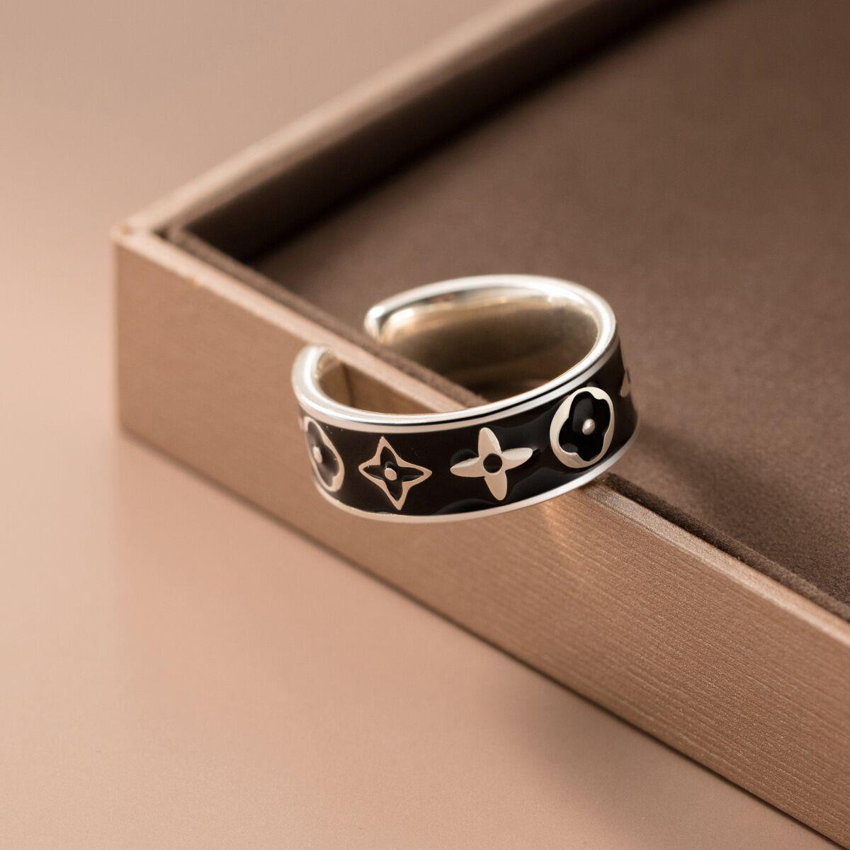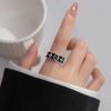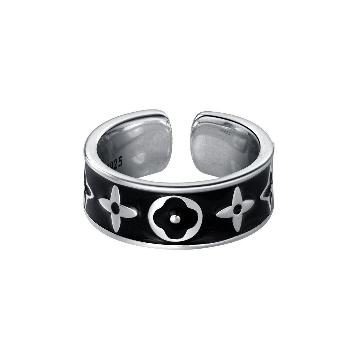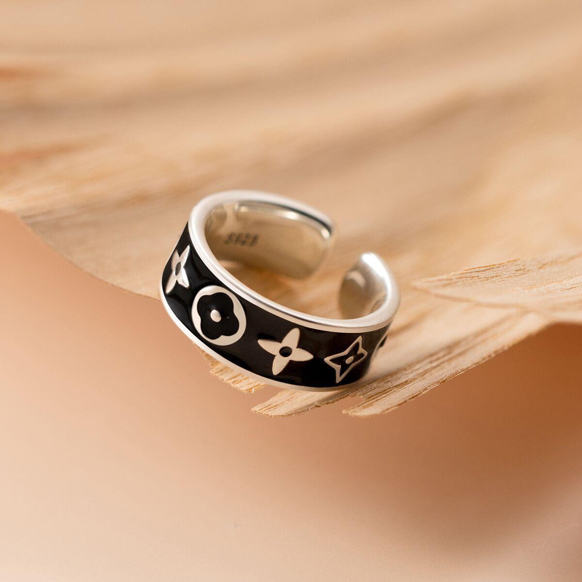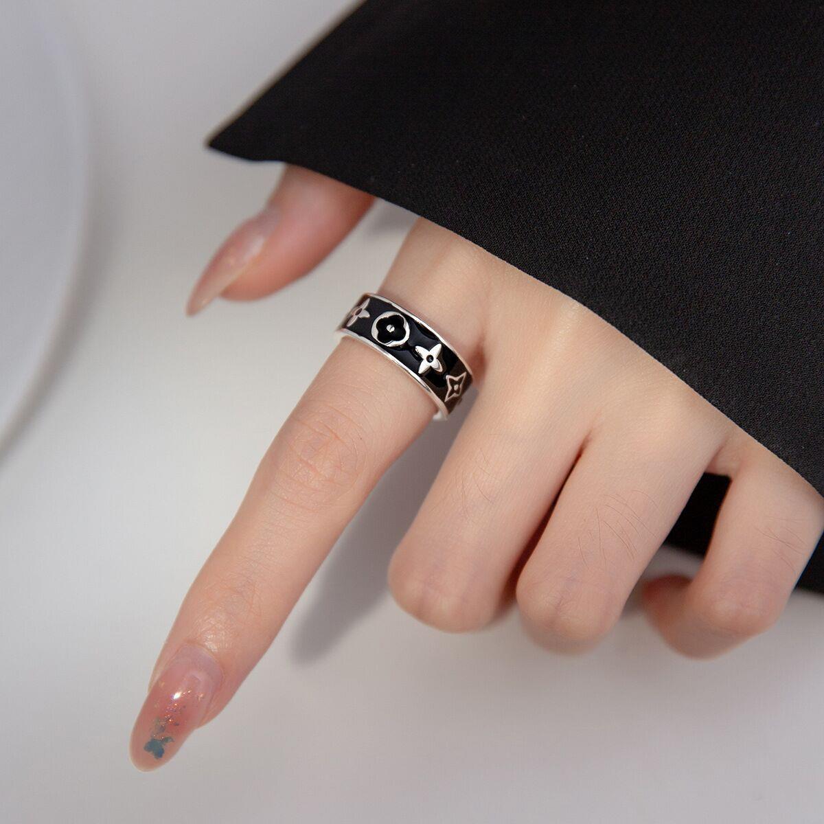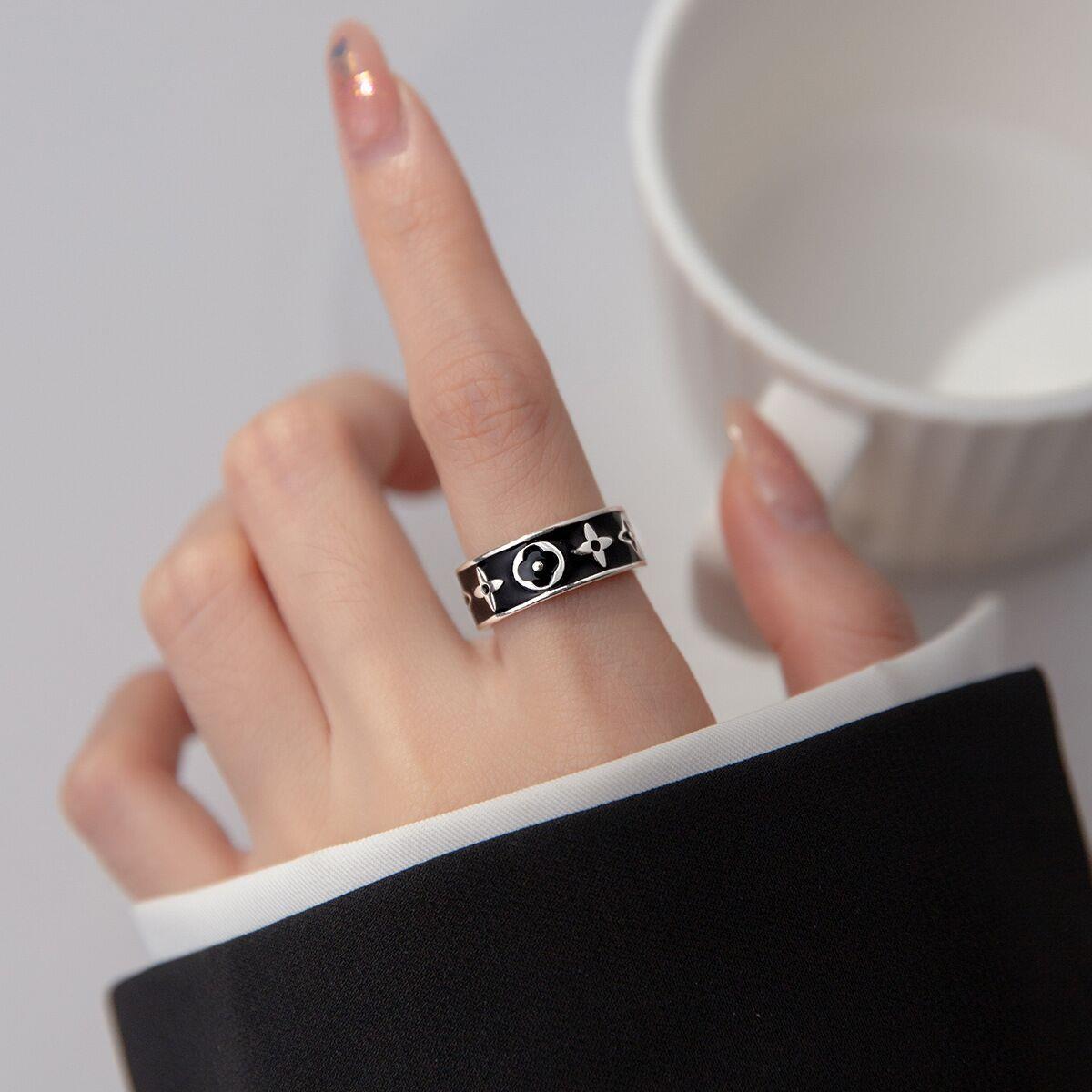 Anillo de flor negra estilo coreano con pegamento para mujer, elegante, personalizado, con diseño de nicho, ideal para celebridades de Internet.