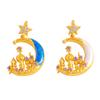 Collar con colgante de Castillo Lunar Sueño Azul de oro fino de alta calidad de larga duración, estrella incrustada, imitación nácar