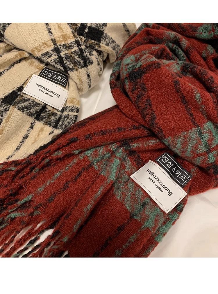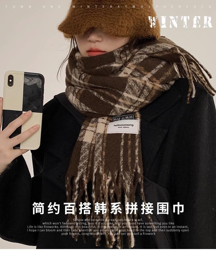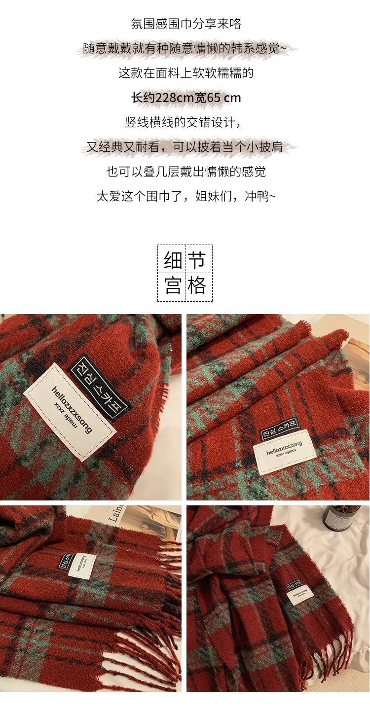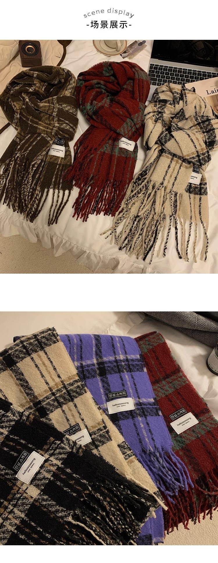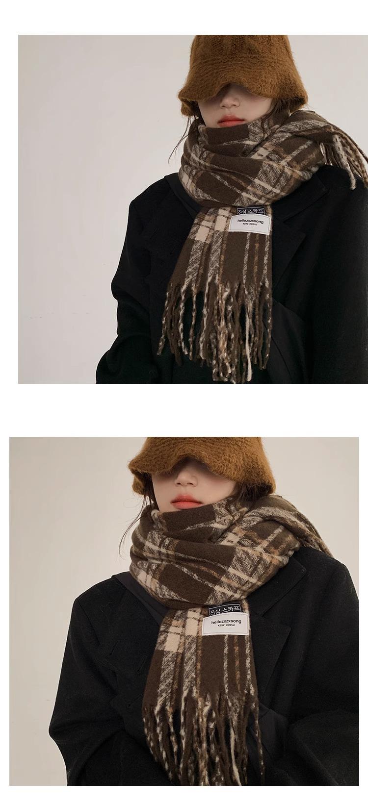 Bufanda de cuadros retro para mujer invierno estilo coreano versátil chal grueso y cálido bufanda de estudiante versátil de alta calidad ins