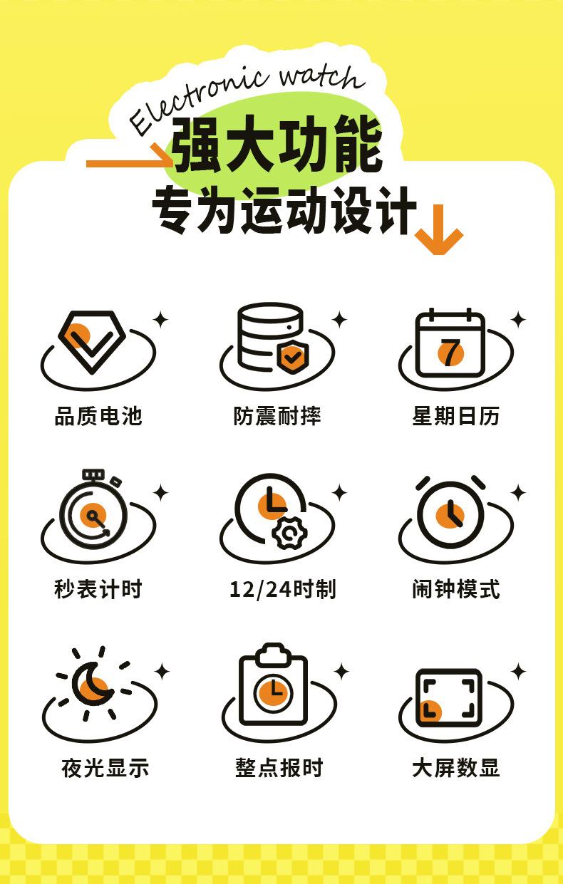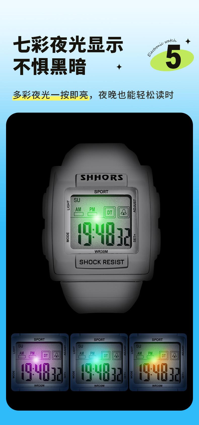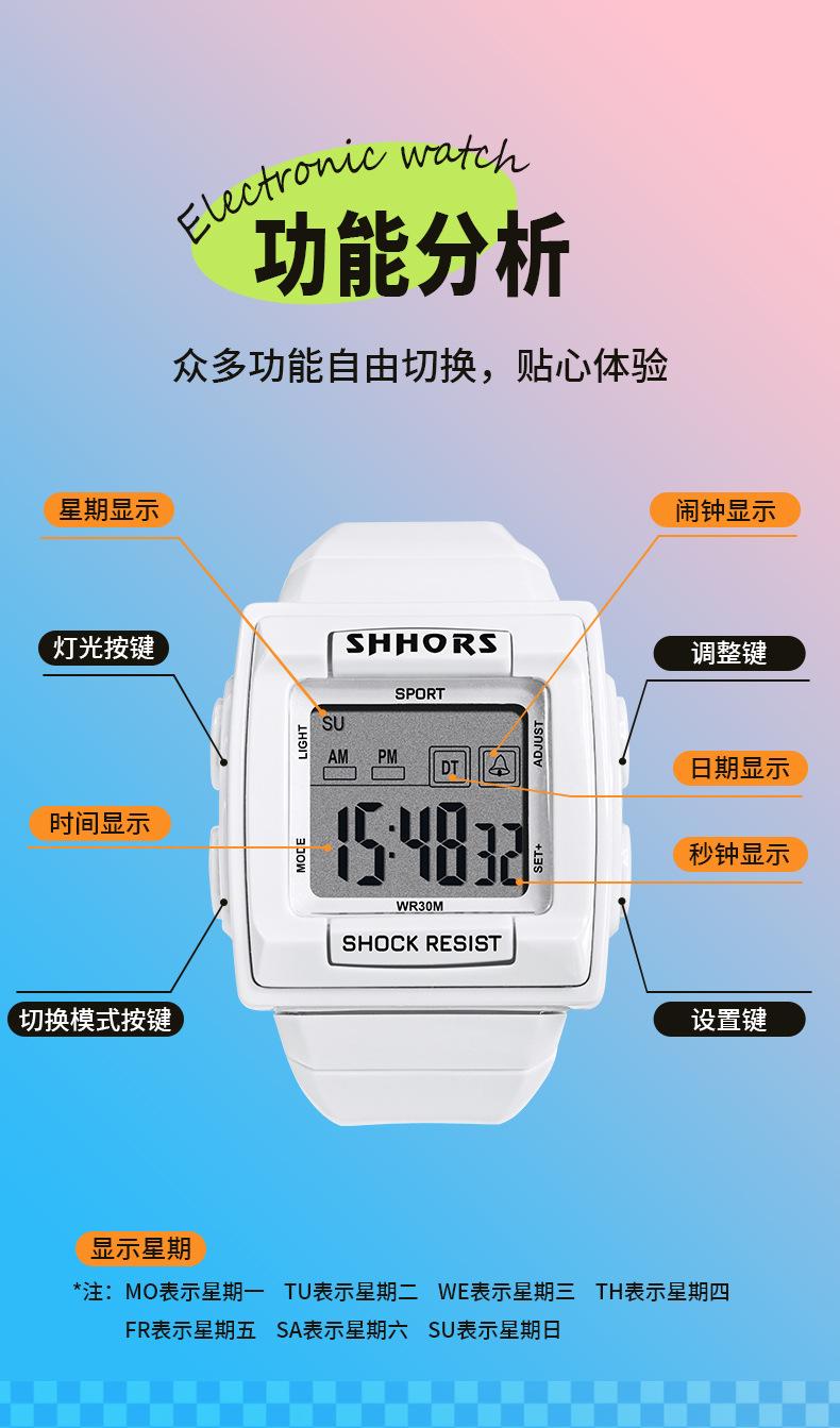 Reloj electrónico deportivo de ocio SHHORS para estudiantes, con alarma, temporizador, segundos corriendo, pantalla grande