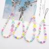 Venta directa de fábrica, superventas, cadena antipérdida para teléfono móvil con cuentas de arcoíris y amor, cordón de perlas DIY.