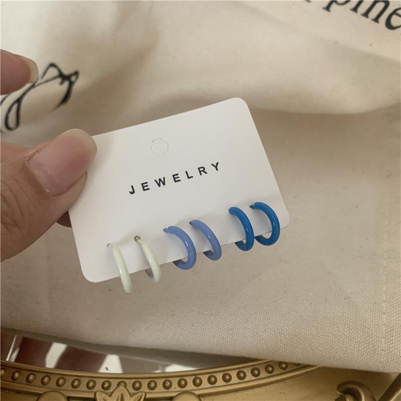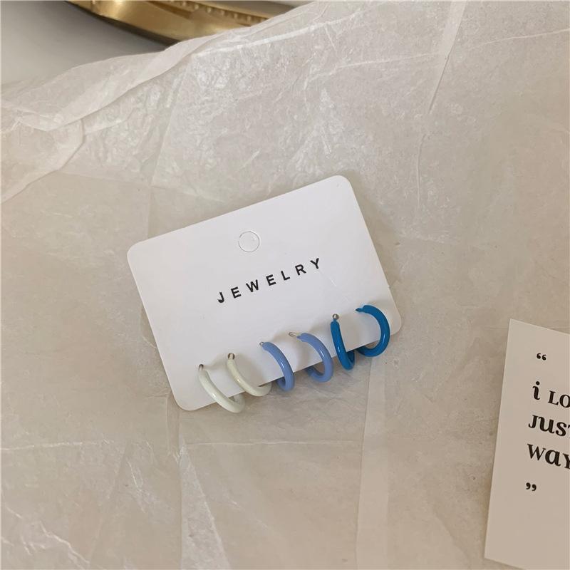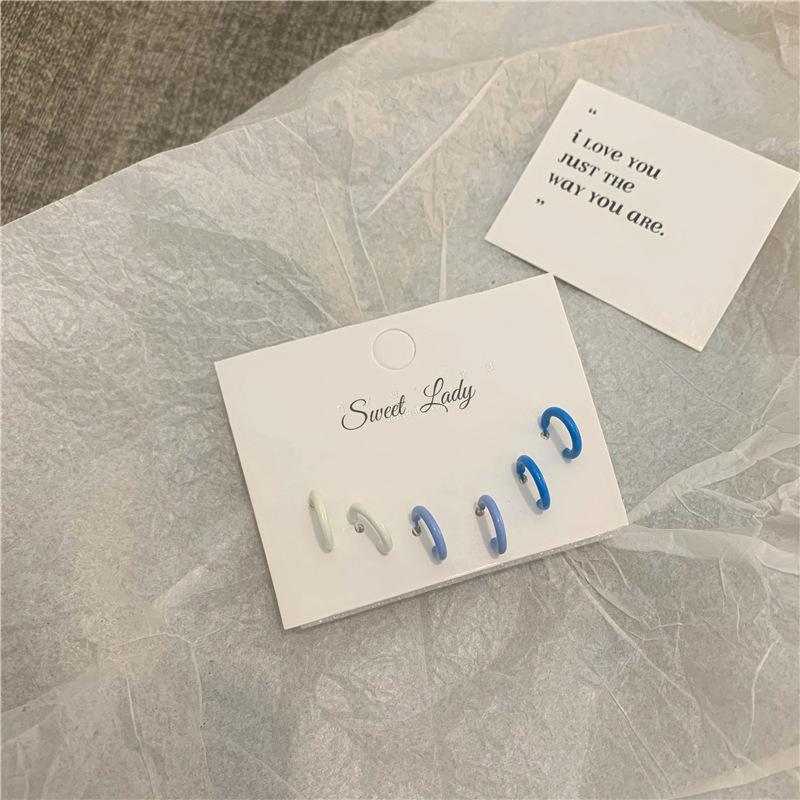 Tres pares de pendientes pequeños sencillos de color blanco y azul, adecuados para uso diario, nuevos pendientes.