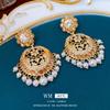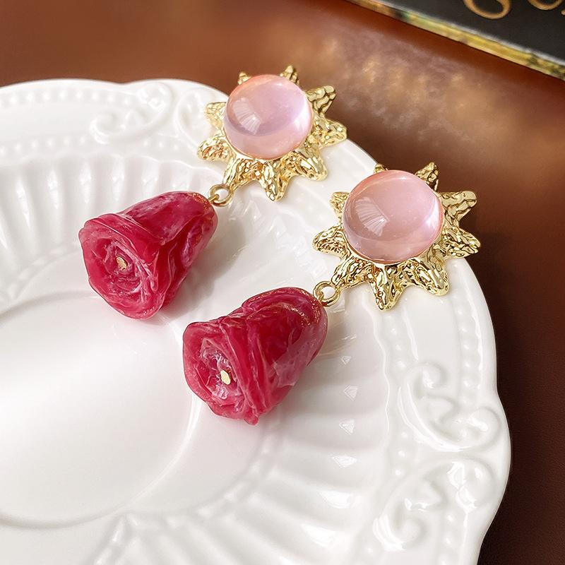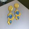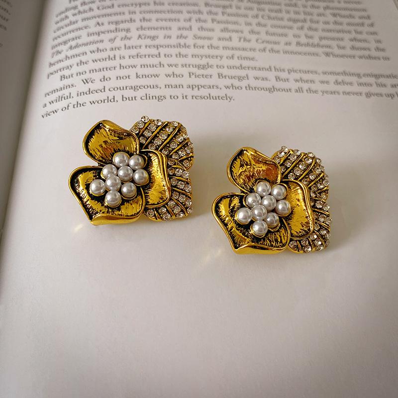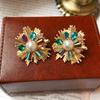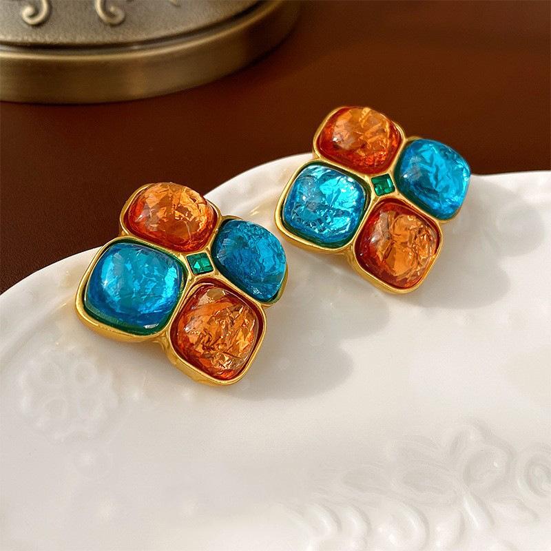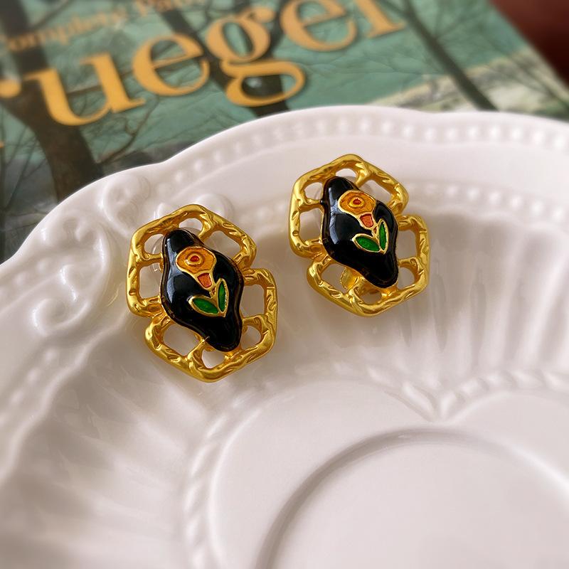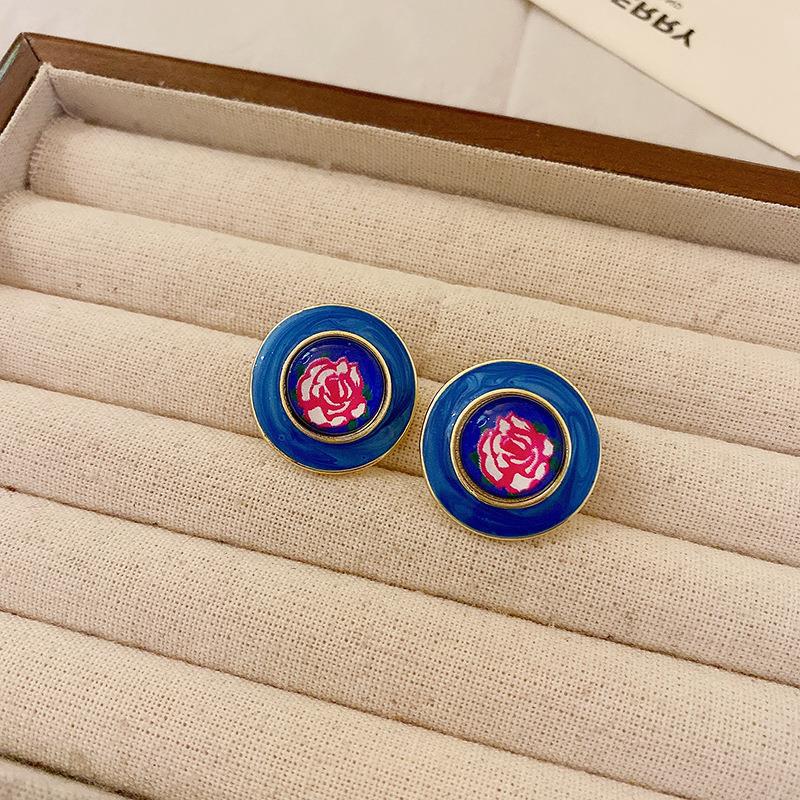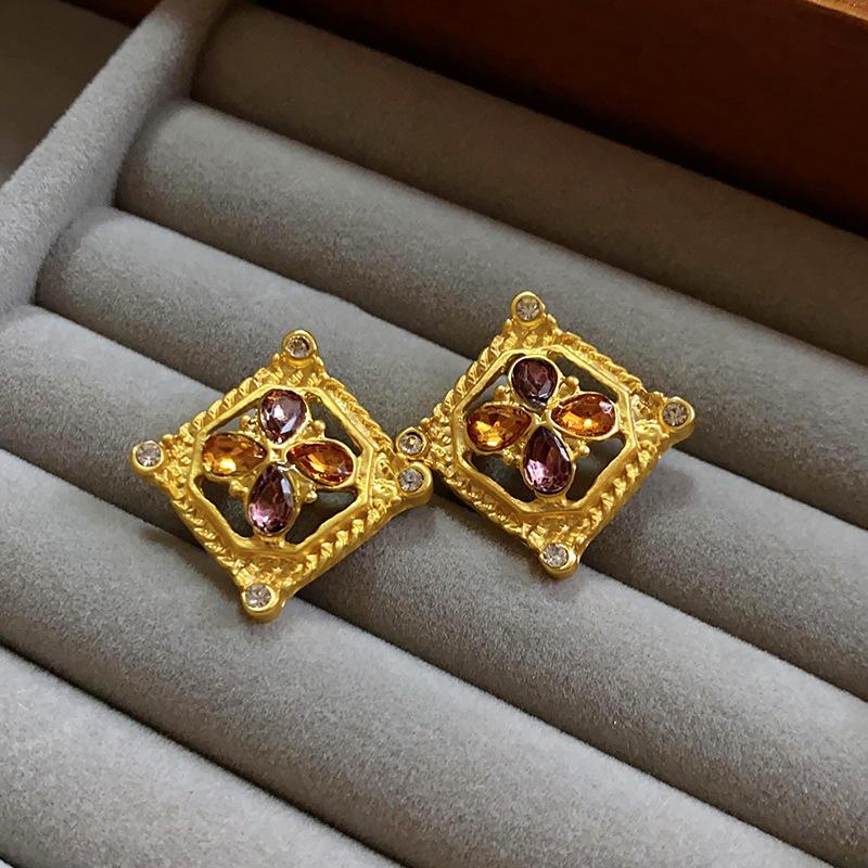 Pendientes vintage de estilo antiguo medio con aguja de plata, pendientes retro franceses, elegantes pendientes de botón para mujer, pendientes ligeros de lujo estilo corte, venta al por mayor
