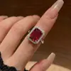 Anillo para Mujer, Estilo Japonés y Coreano, Anillo Abierto de Circonita Roja, Diseño Dulce de Nicho, Anillo de Moda, Anillo Ajustable