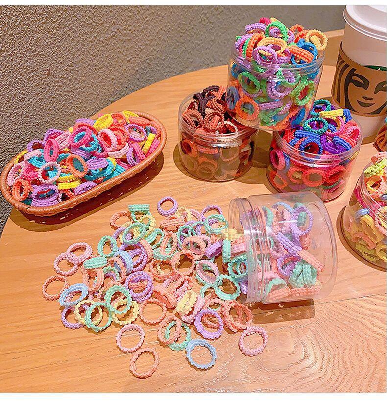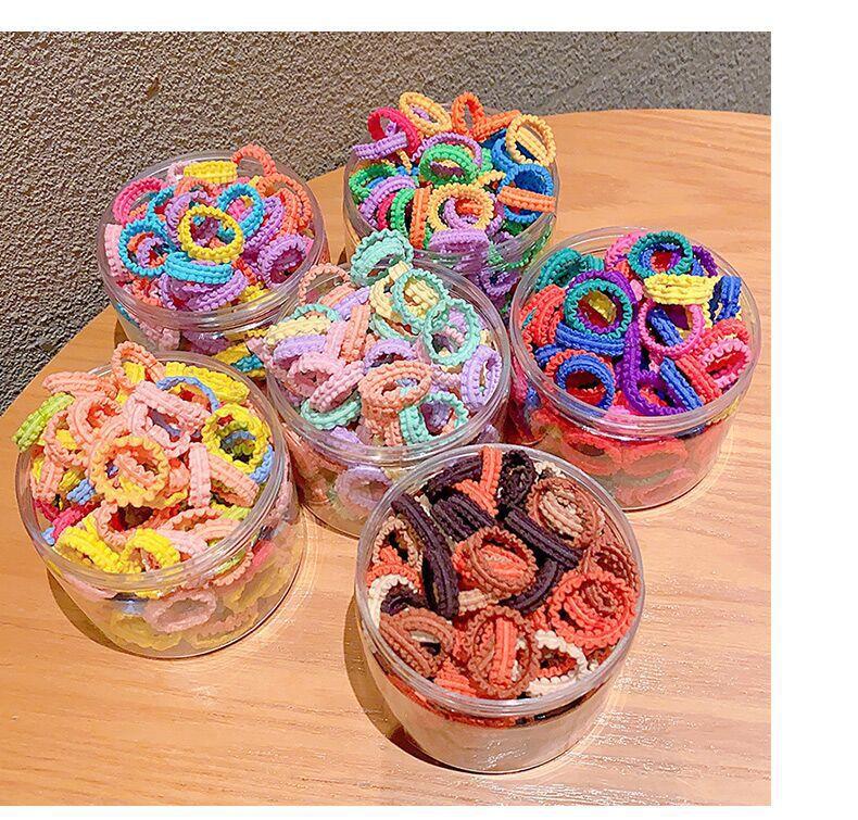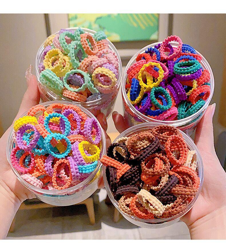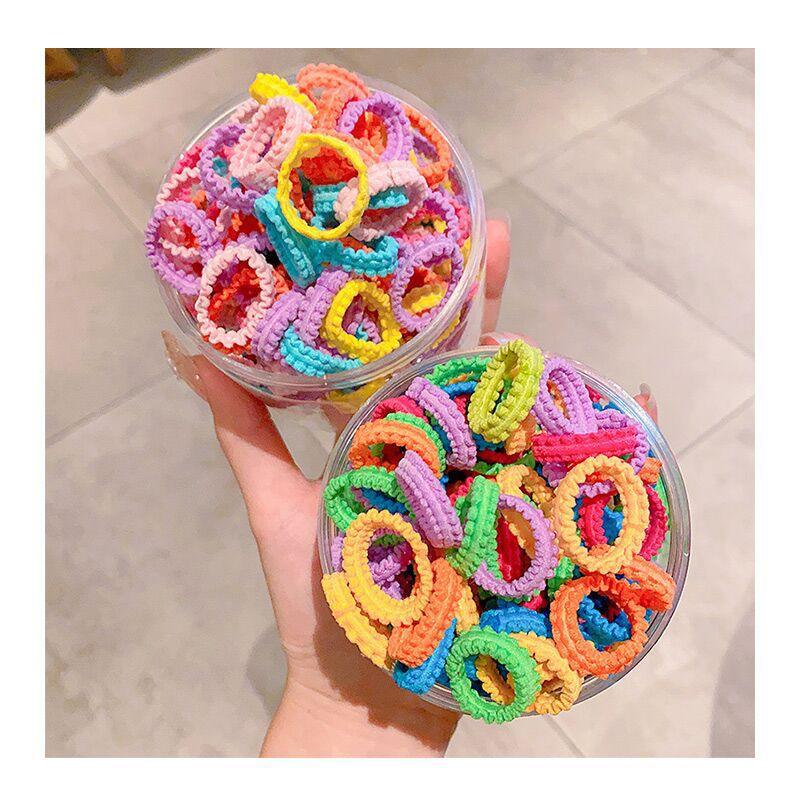 Anillo de pulgar para niños de 50 piezas, encaje que no daña el cabello, enlatado, nuevo, color degradado, diadema para niña con coleta, cabello, pequeña banda elástica.