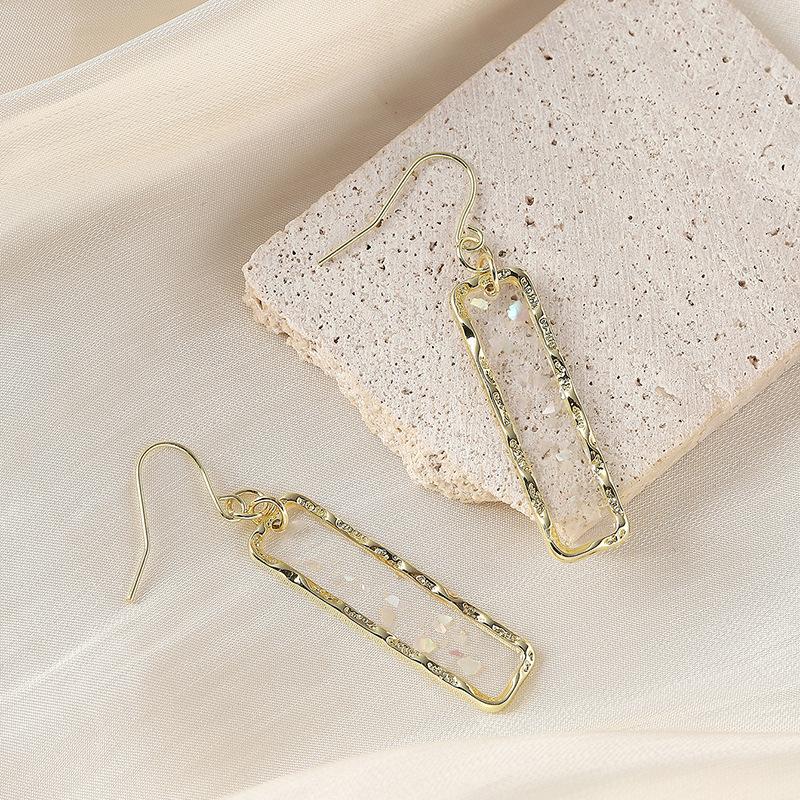 Versión coreana de aretes geométricos cuadriláteros transparentes de lujo ligero aretes delgados personalidad combinable temperamento aretes al por mayor