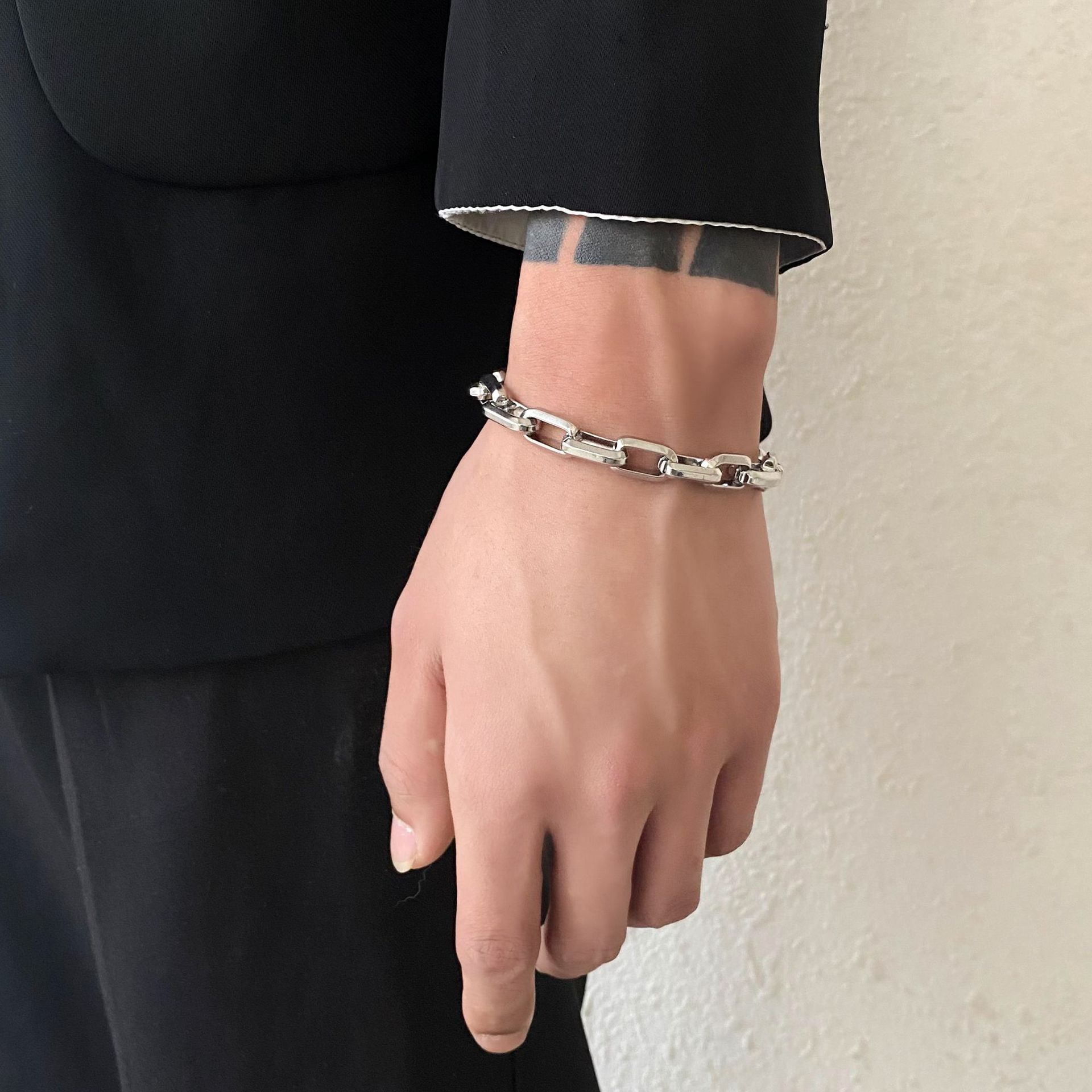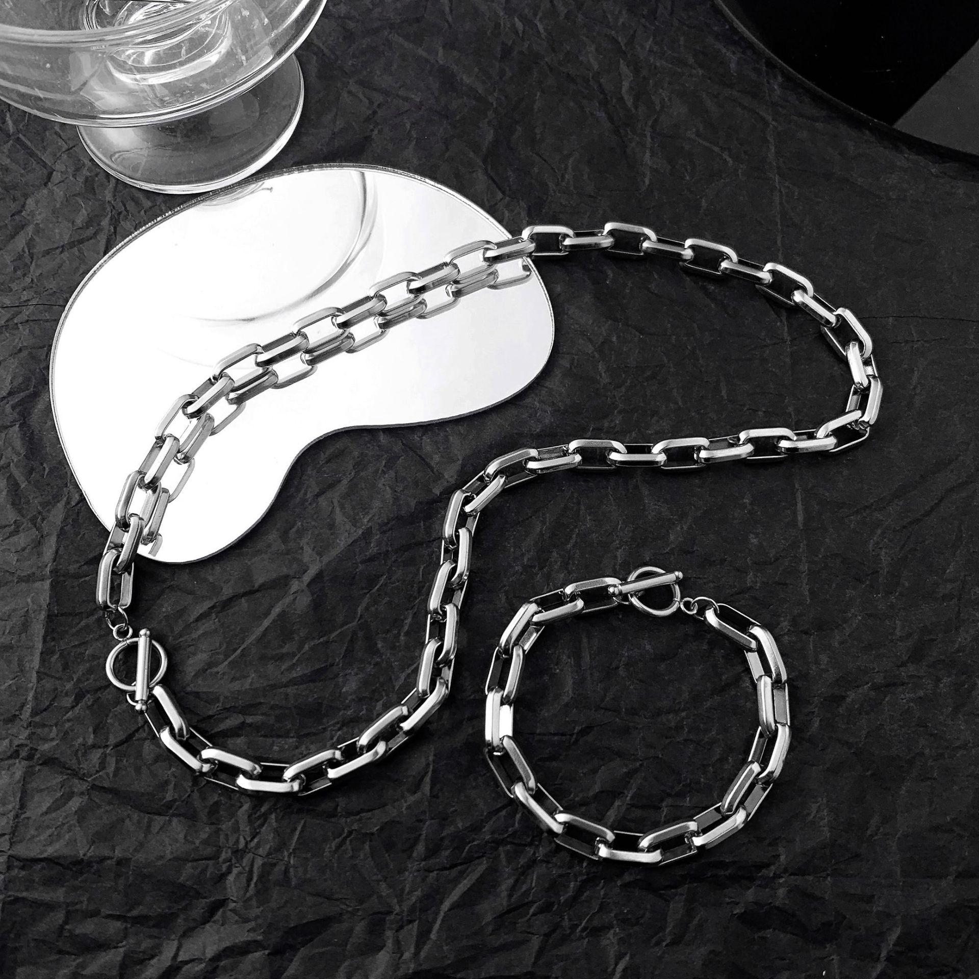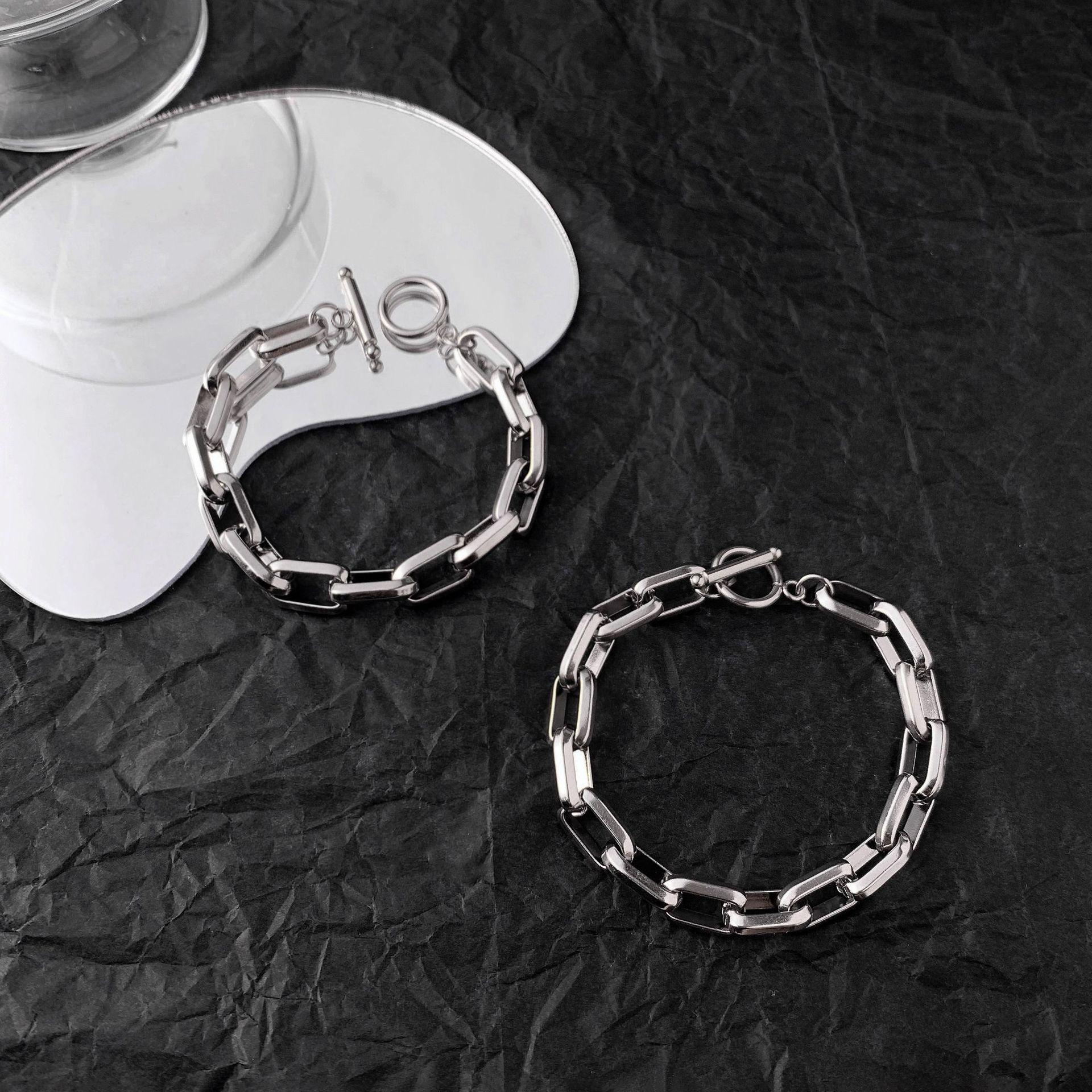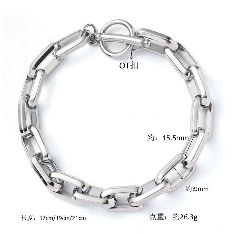 Anillo largo a cuadros otbuckle punk hip-hop de acero inoxidable entrelazado palabra O para hombre y mujer acero titanio hebilla de una palabra pulsera cubana