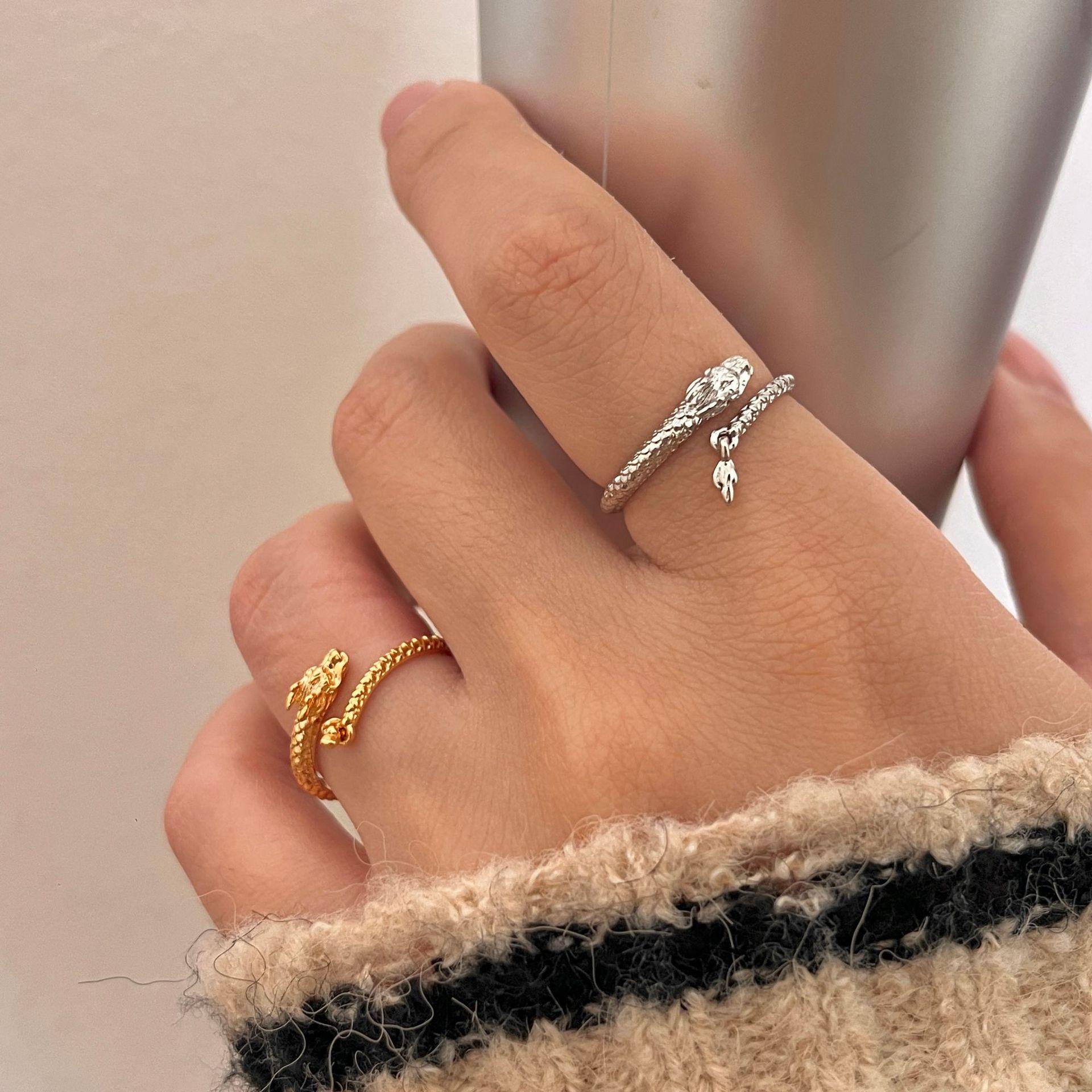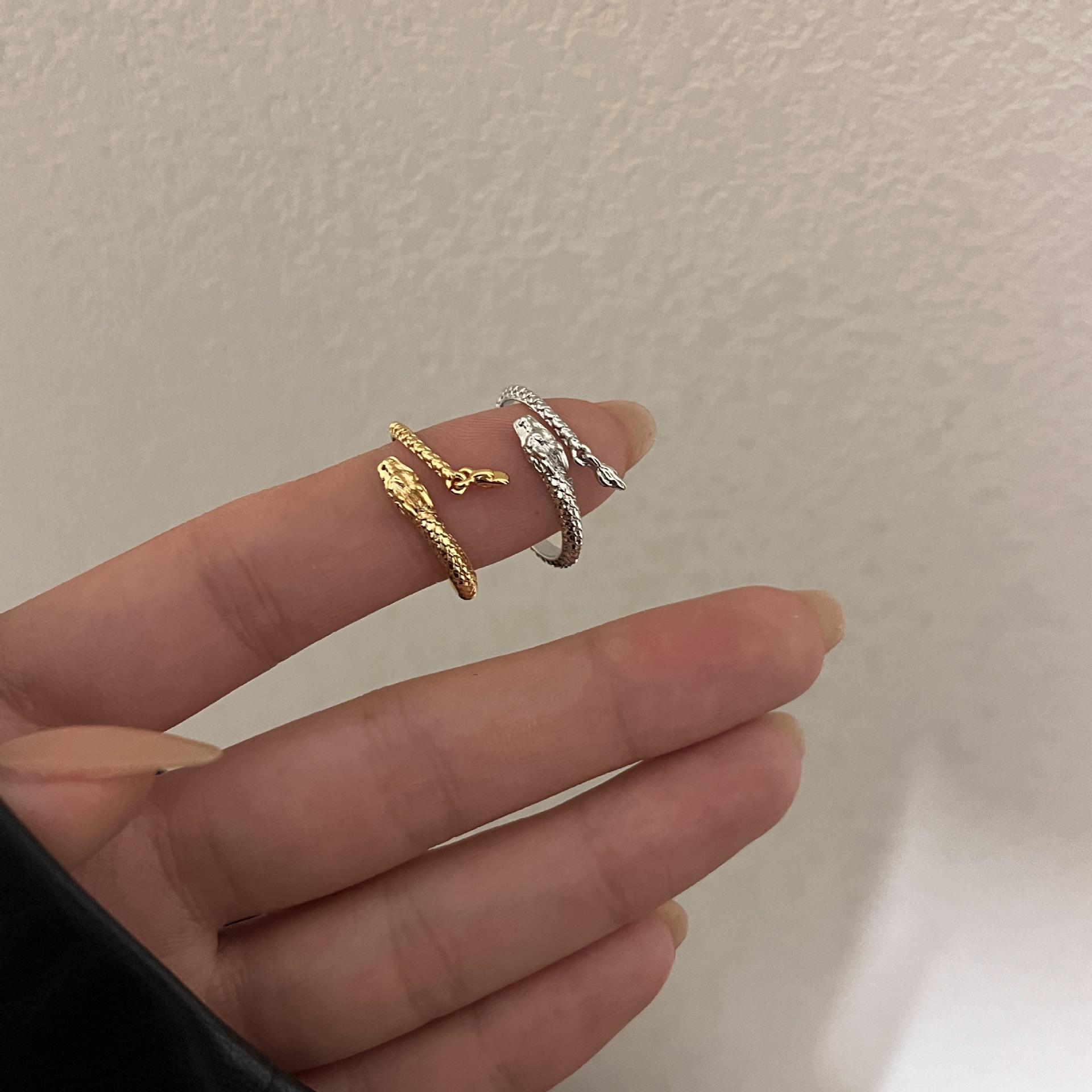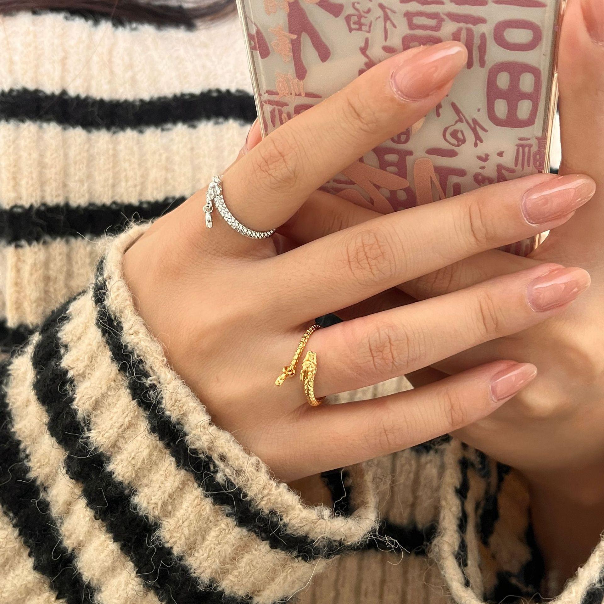 Anillo Dragón Plateado Cola Oscilante Micro-incrustado Zircón Anillo de Dedo para Mujer Diseño de Nicho Neutral Sentido Avanzado de Lujo Ligero Accesorios para Anillo de Dedo