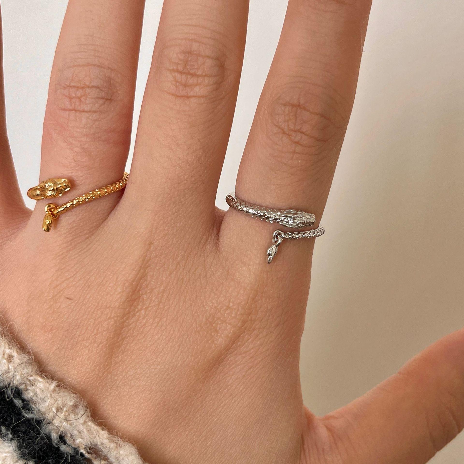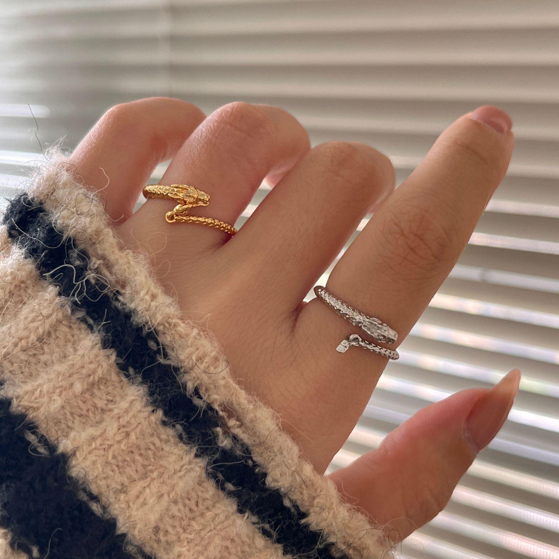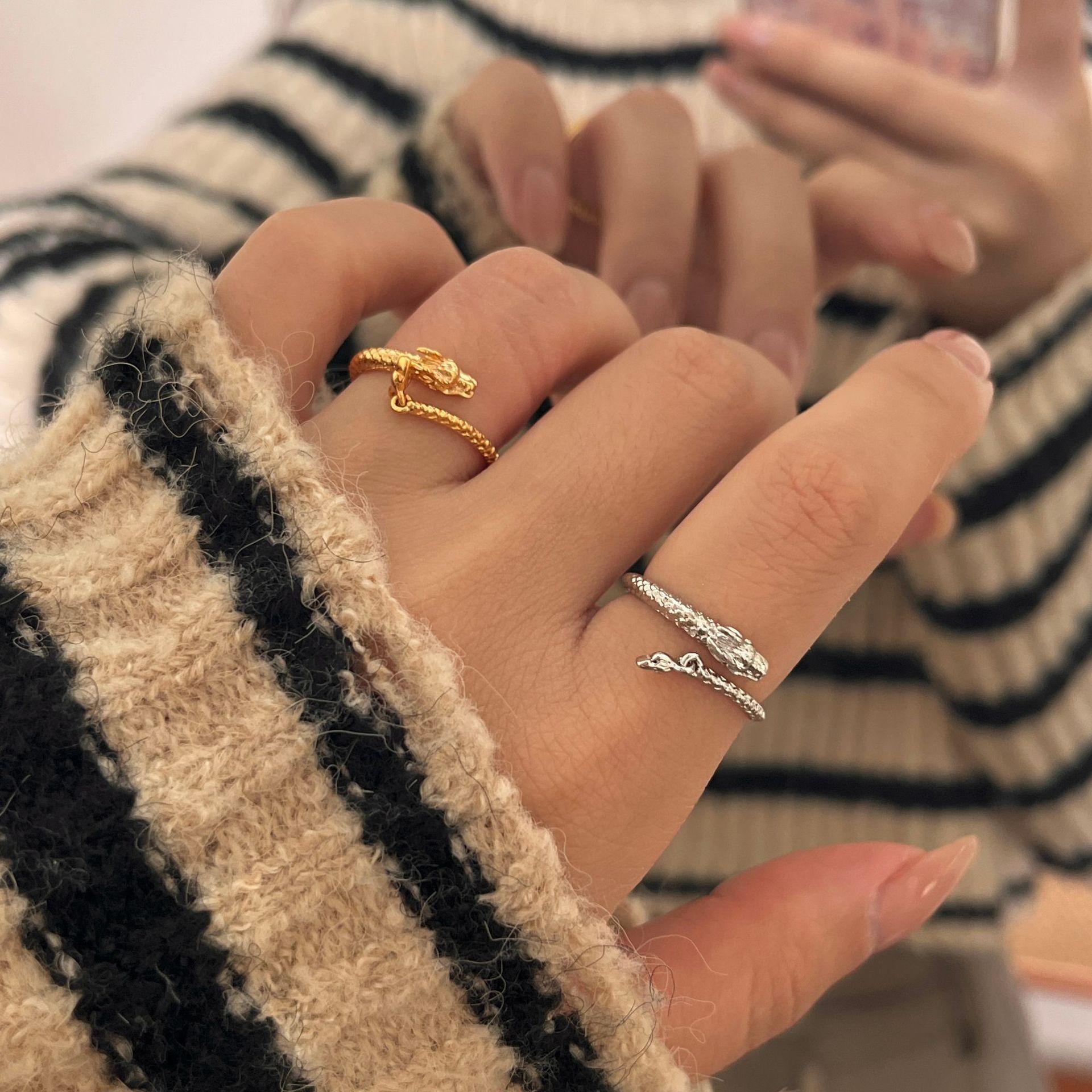 Anillo Dragón Plateado Cola Oscilante Micro-incrustado Zircón Anillo de Dedo para Mujer Diseño de Nicho Neutral Sentido Avanzado de Lujo Ligero Accesorios para Anillo de Dedo