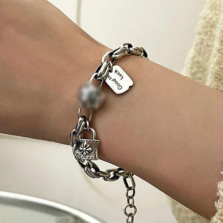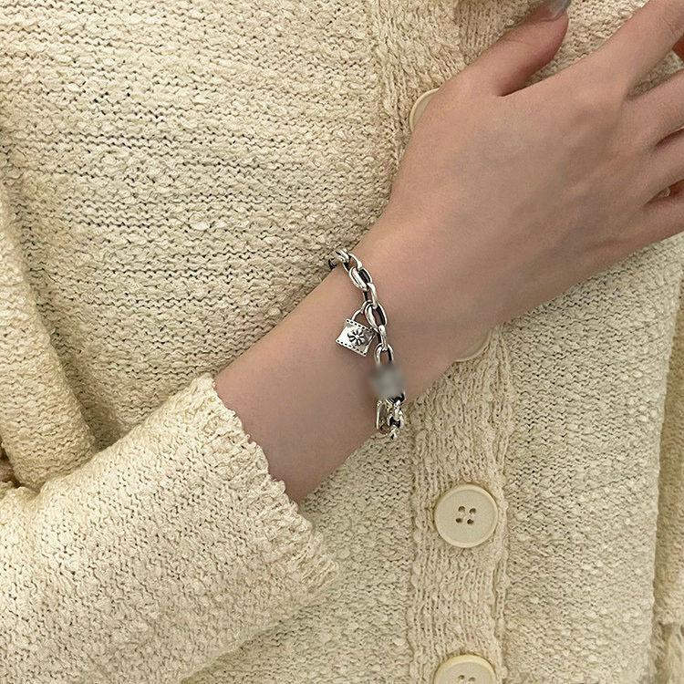 Pulsera retro de diseño nicho con cierre cruzado para mujer, moda versátil, personalidad, pulsera de cadena gruesa