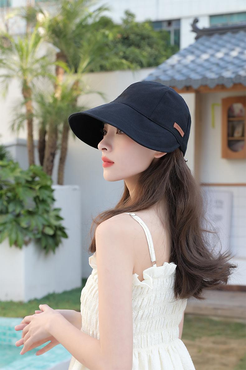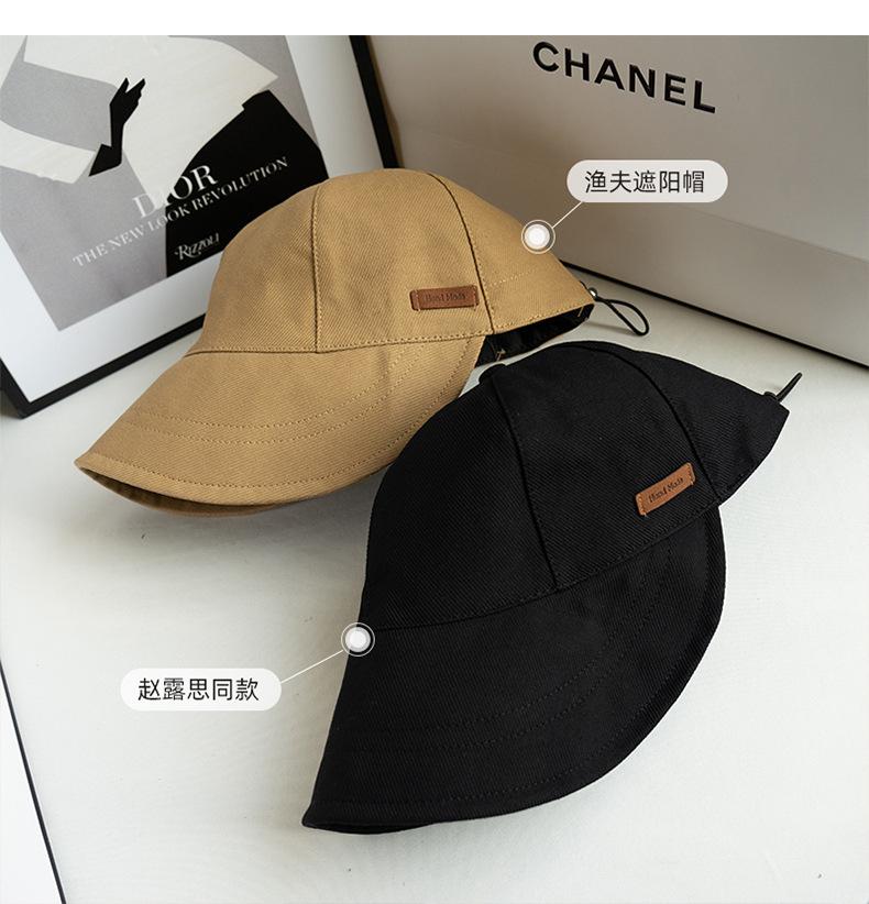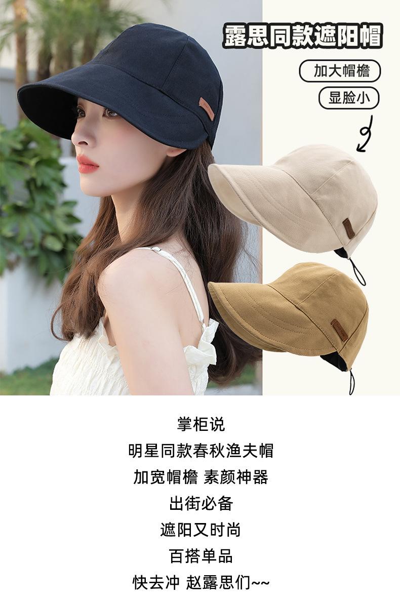 Zhao Lusi mismo sombrero de pescador femenino 2023 primavera y verano protección solar protección UV sombrero de sol sombrero de sol negro liso