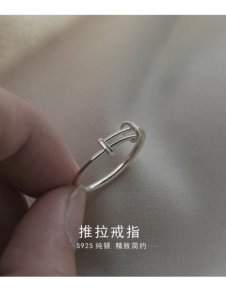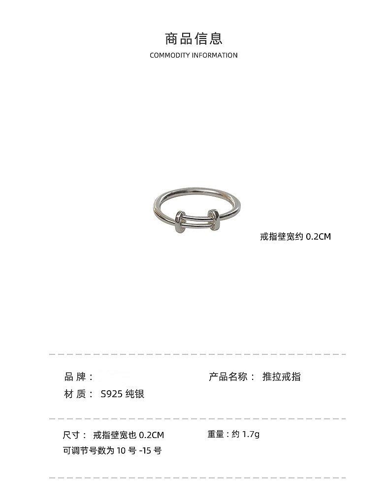 Anillo de Plata S925 Japonés y Coreano de Personalidad Push-pull para Mujer Retro Moda Anillo de Pin Anillo Elegante Elegante Simple Anillo de Dedo Moderno