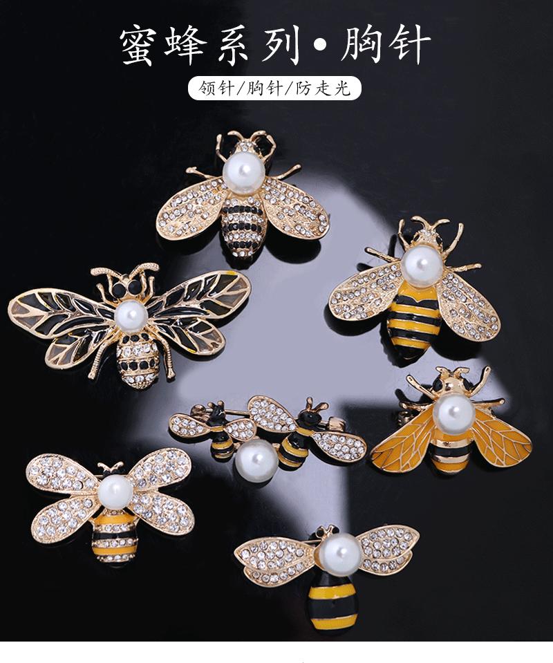 Broche de Abeja Insecto de Diamantes Completos Anti-Exposición Perla Corsage Broche Pin para Mujer Nicho de Alta Gama Accesorios
