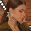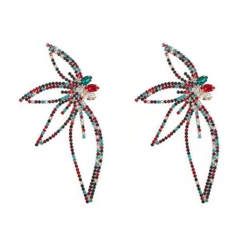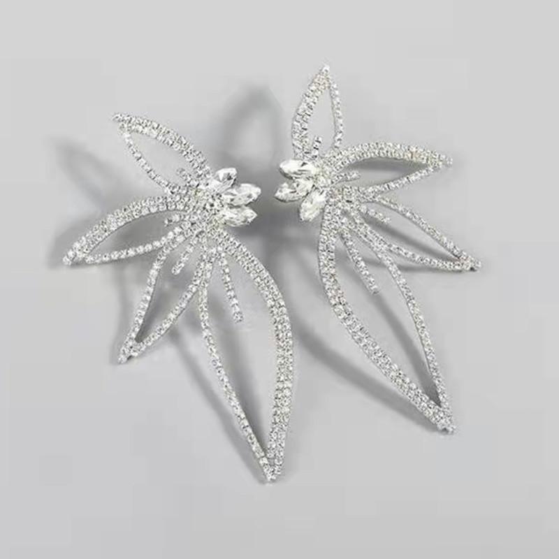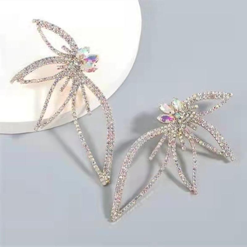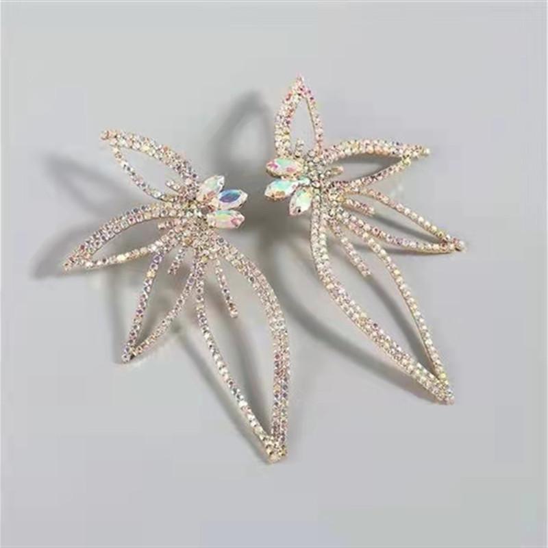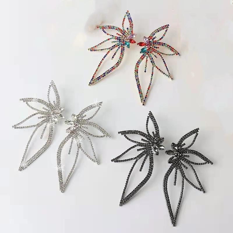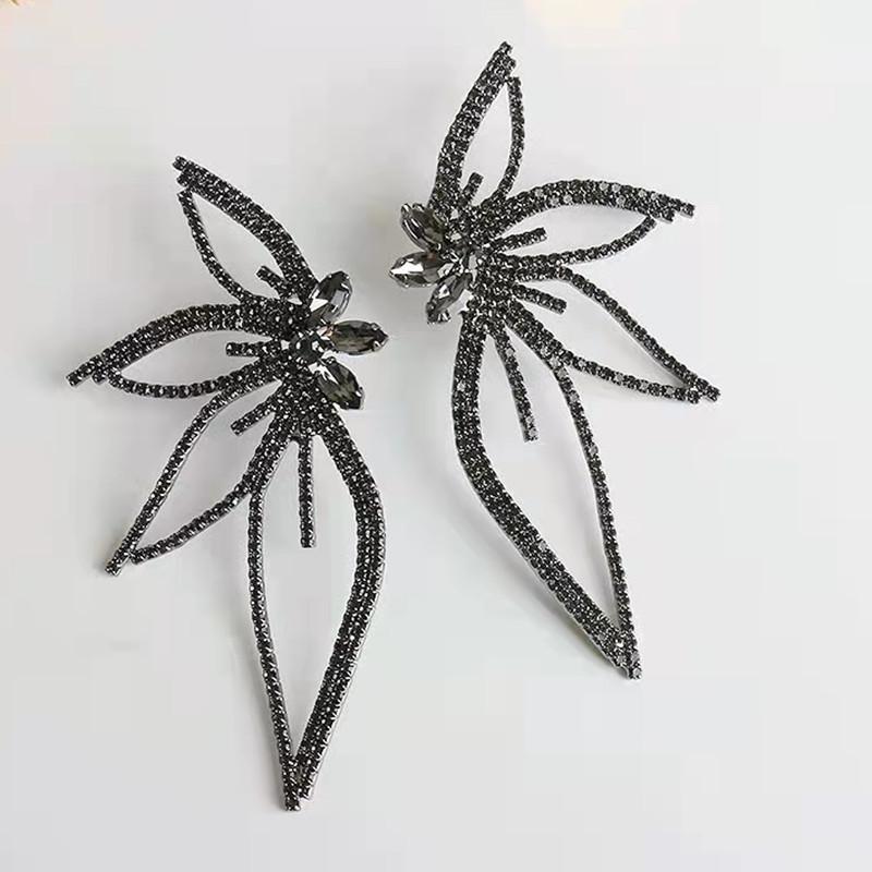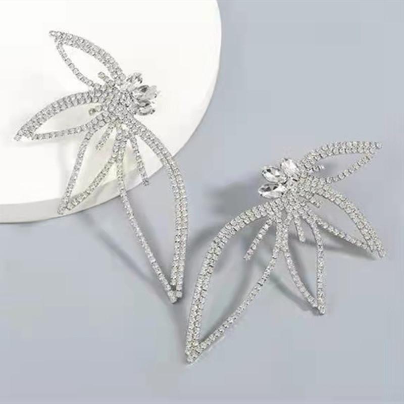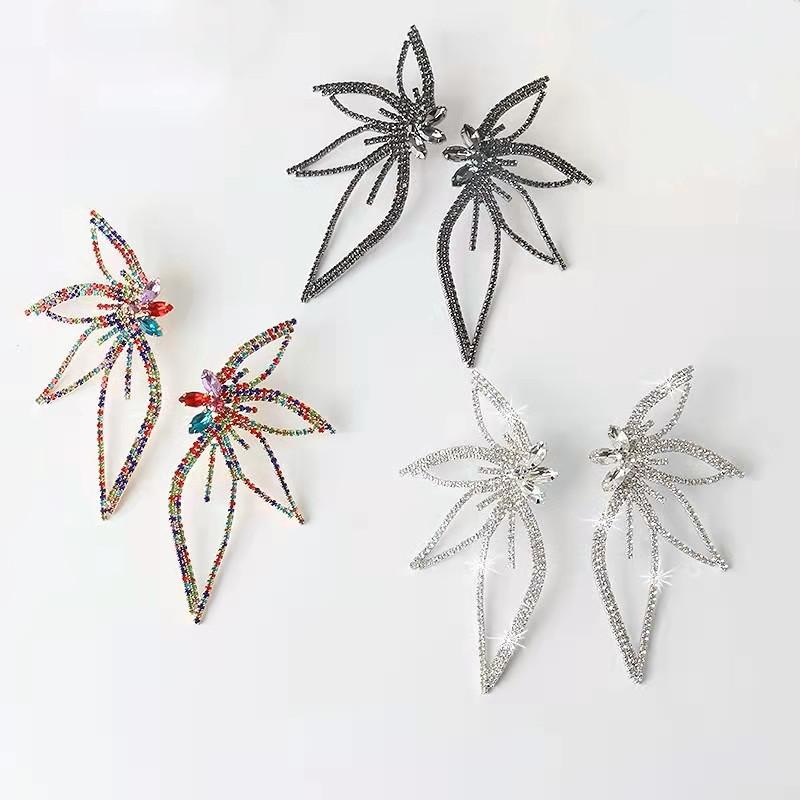 Pendientes de moda europeos y americanos para mujer, con hojas de flores y diamantes exagerados, personalizados.