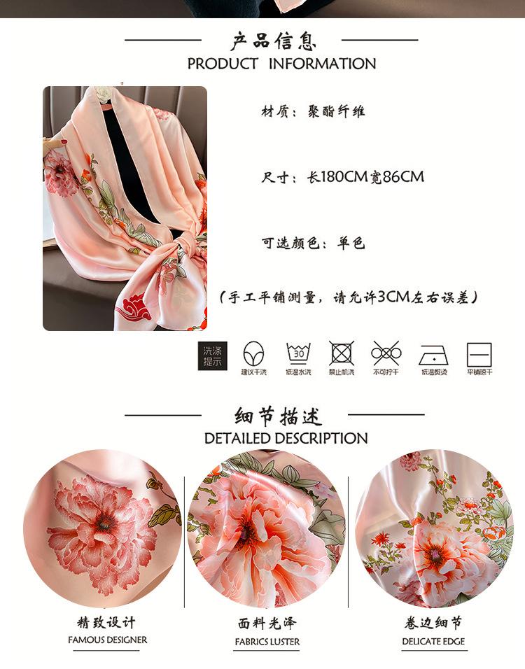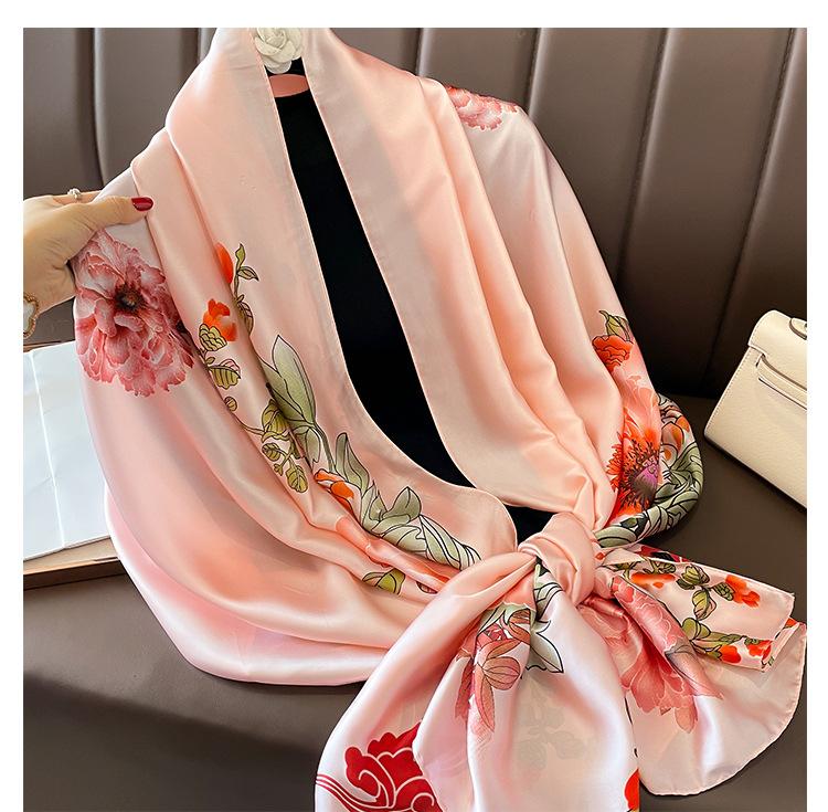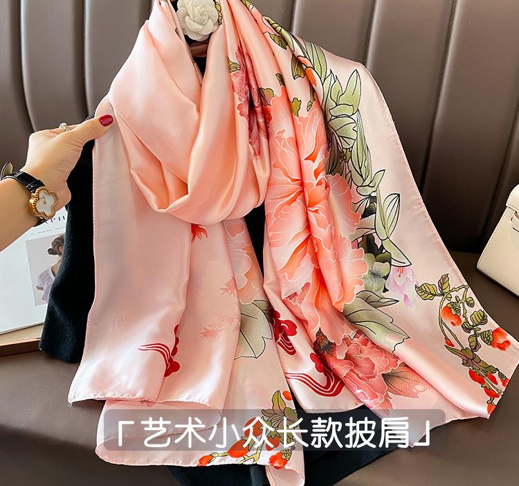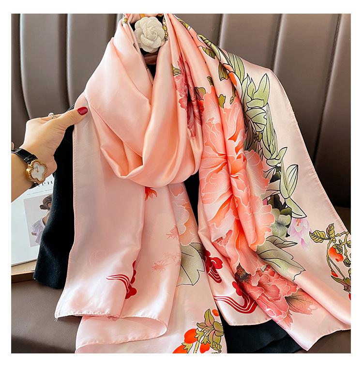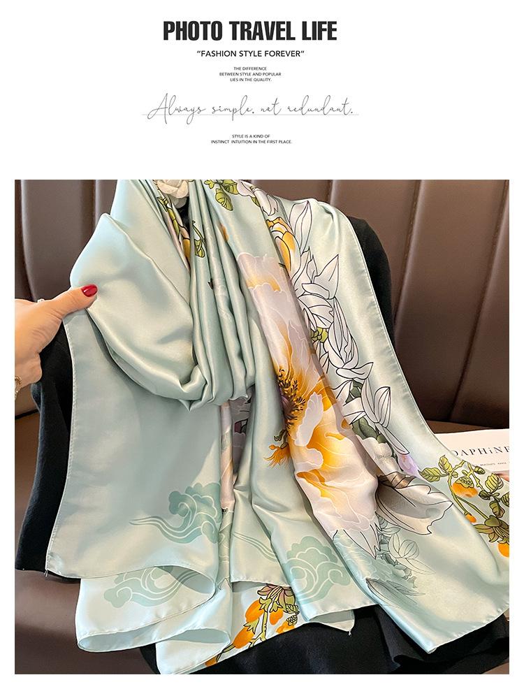 Exquisito Chal Extra Largo Estampado Bufanda de Seda Estilo Otoño e Invierno Moda Madre Decorativa Versátil Bufanda Primavera y Otoño Elegante