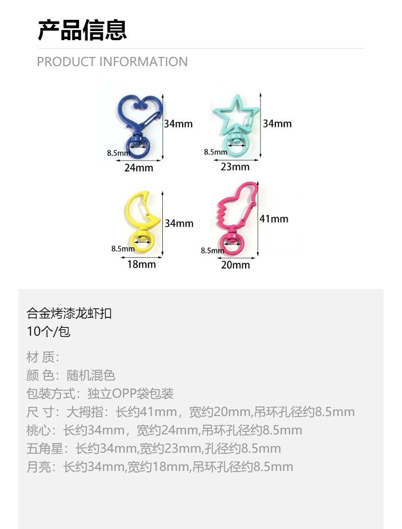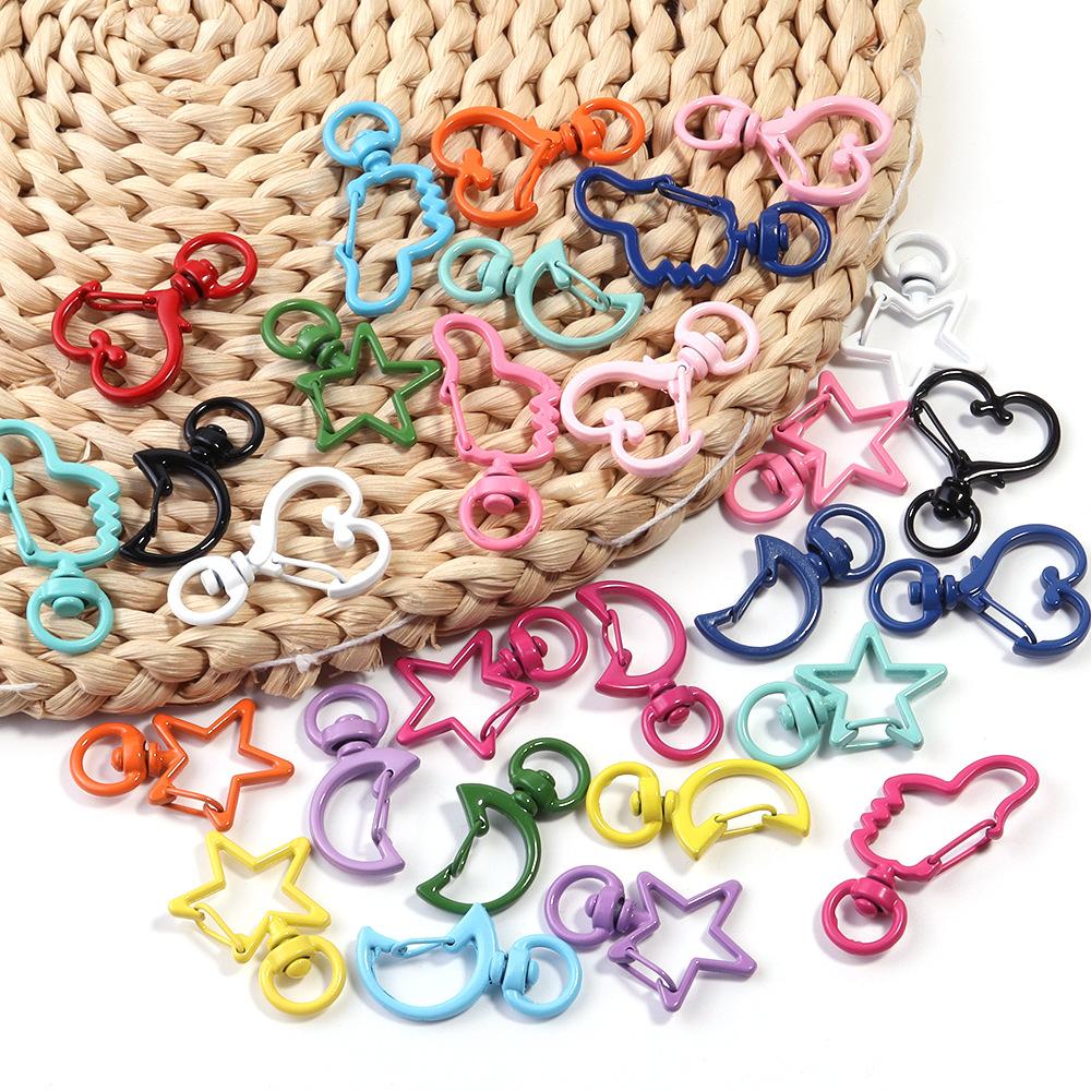 Hebilla de langosta de aleación, pintura de color, pulgar, amor, luna, estrella de cinco puntas, llavero, bricolaje, pulsera hecha a mano, accesorios