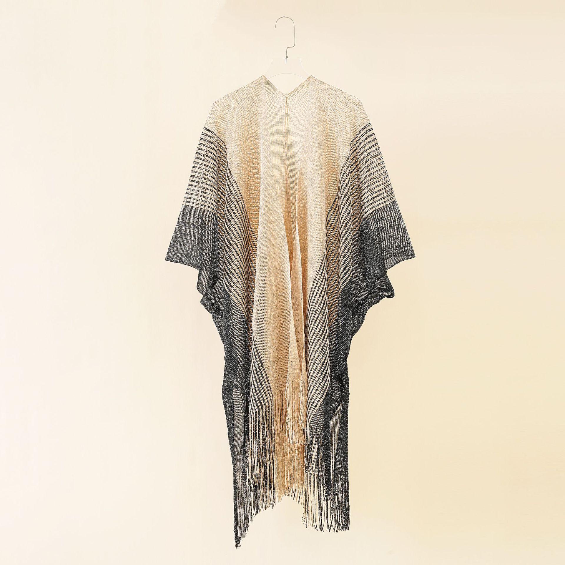 El elegante chal Douyin de Miss He, de seda dorada y plateada, con aberturas laterales, para cubrirse el bikini y protegerse del sol, es una prenda nueva y hueca.
